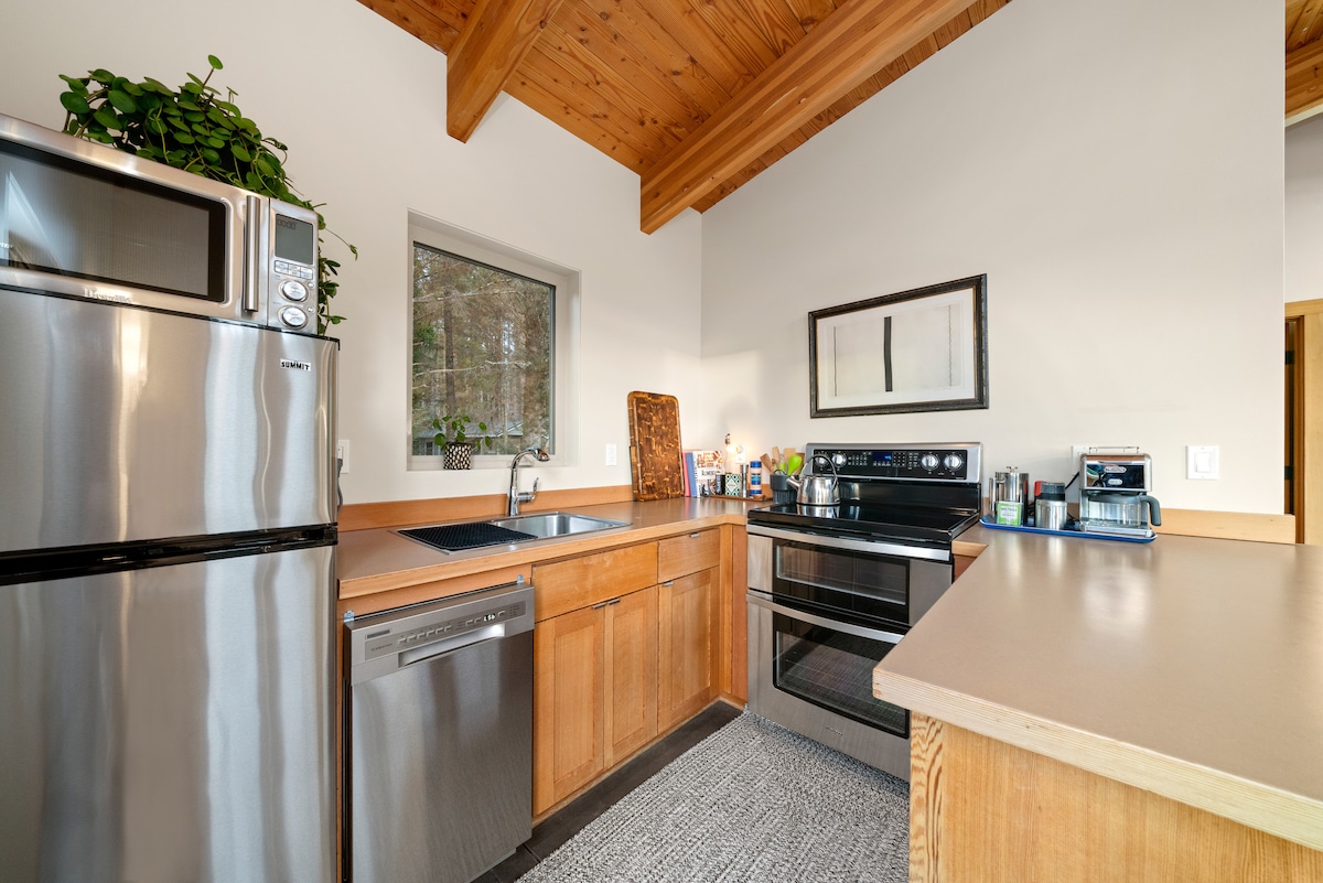 Nuestra cabaña de estilo surf puede ser pequeña, pero las grandes ventanas con vistas a la bahía, el océano y los bosques costeros permiten que mucha luz inunde el espacio. A pocos pasos de la playa, tiendas y cerca de algunos de los mejores lugares para hacer surf del norte de Oregón. Disfruta de las mañanas brumosas en el jacuzzi, aventúrate durante el día y pasa las puestas de sol junto a la hoguera o en nuestra gran terraza. Nuestro patio delantero también tiene un sendero de juegos, así que trae algunas manzanas, es probable que veas un ciervo o dos :). @surflineloft STVR#851-24-000045
