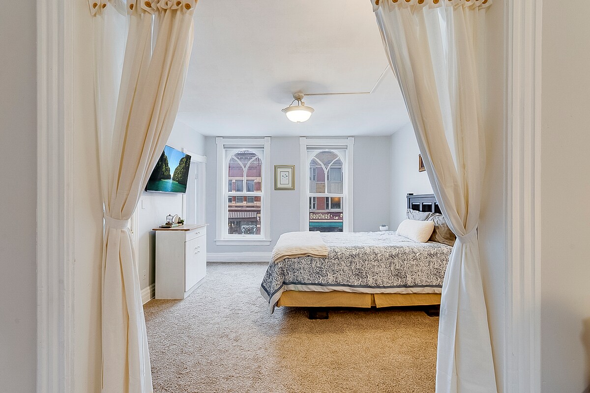 Welcome to The Getaway! Make yourself at home in this spacious loft-style apartment. Located in the heart of Northfield’s historic downtown district, the recently renovated apartment offers modern-day amenities with its original old-world charm. You'll love the 10-foot ceilings, skylights, arched windows & open-concept space. In addition to the one-bedroom with a walk-in closet, The Getaway boasts an office, dining space, living room, cozy reading nook, full kitchen & Queen pull-out couch.