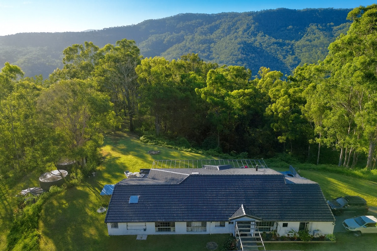Una de las 2 excepcionales casas de vacaciones en el Parque Nacional Lamington. 3 terrazas con vistas al valle de Numinbah. Capacidad para 4 personas en dos dormitorios, cada uno con baño privado. Los grupos de más de 4 personas pueden alquilar la adyacente Coomera West House. Se aceptan reservas para niños de 4 años o más. La casa y los terrenos no son adecuados para niños menores de 4 años, niños pequeños y bebés.