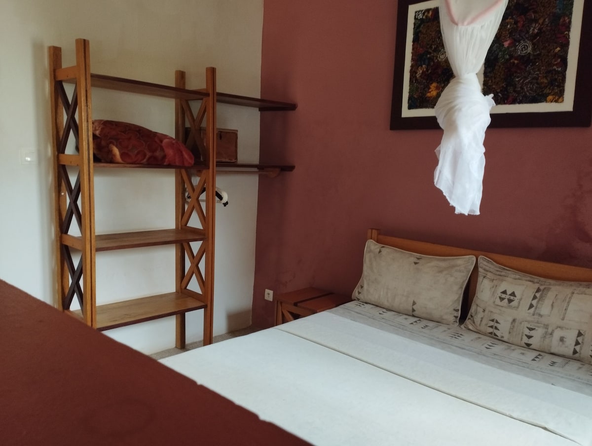 Casa a la entrada del pueblo, a pie para las playas más bellas, el mercado artesanal, la farmacia, los supermercados, los restaurantes. Patio al aire libre con mesa para 8 y parrilla. Apartamento para 4 personas. Terraza de 80 mq con gran sofá en ángulo de 10 plazas. Vistas del bosque y de los bolongs y de las magníficas puestas de sol de Casamançe. Tarjeta de electricidad y TV para cargar según el consumo. Disponible un segundo apartamento para 2 personas al lado (en Airbnb Casa Blanca Casamance.)