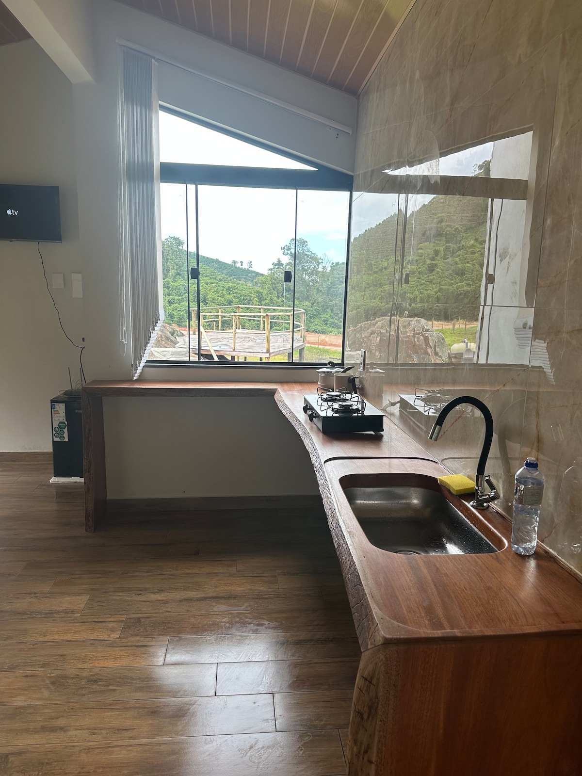 Reconecte-se à natureza neste lugar inesquecível, que garante conforto e exclusividade. Piscina de borda infinita aquecida, com acesso pelo quarto. Localizado entre as montanhas do Caparaó, o chalé oferece uma vista exclusiva e totalmente privativa da Pedra Menina, de toda a cordilheira ao redor e da Cachoeira do Chiador (com acesso exclusivo). Cozinha completa. Disponibilizamos de enxoval completo. Cama queen. Produtos para cabelo em parceria com Lahory. Ambiente seguro e privativo.
