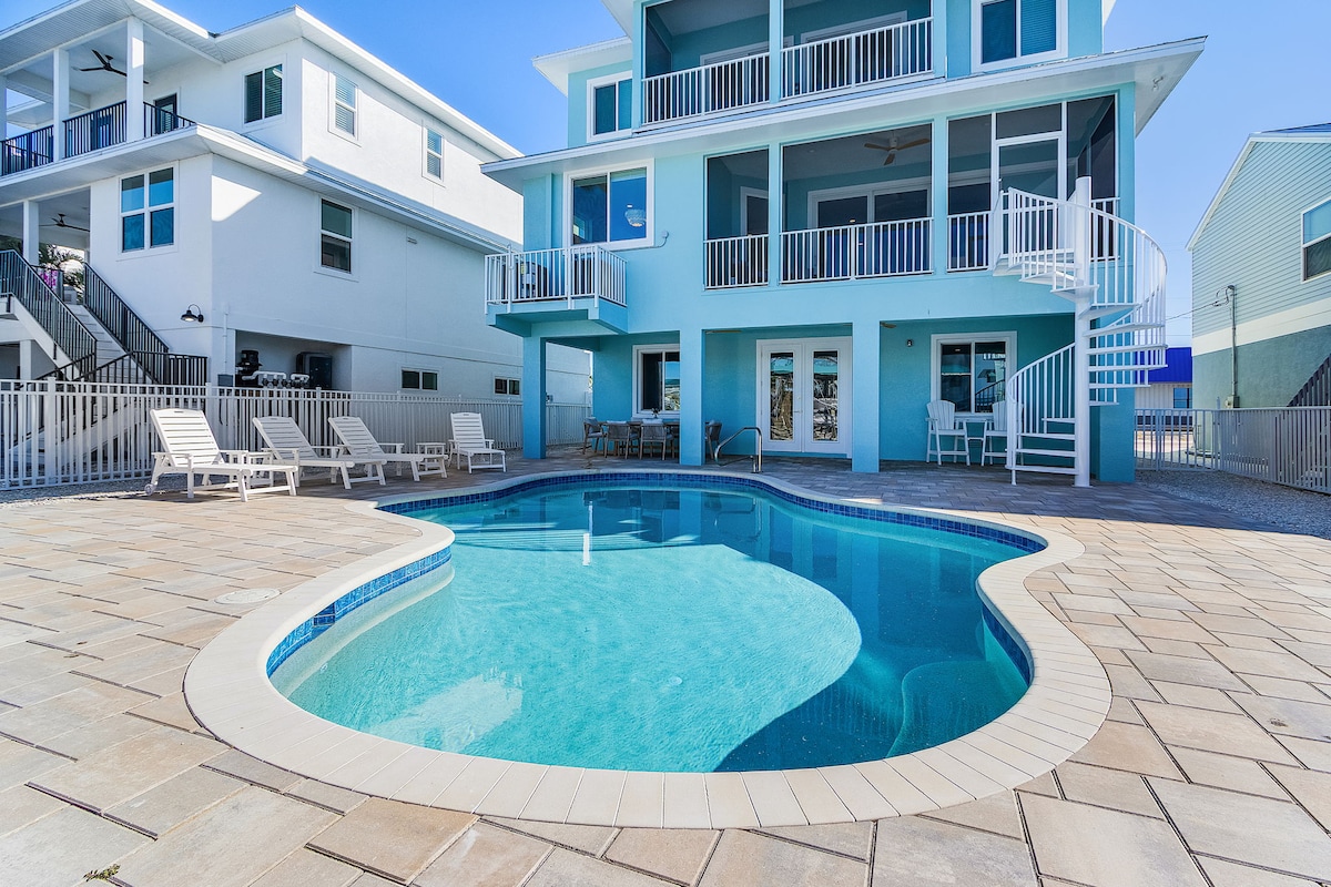 Este alojamiento nuevo, ofrecido por Paul y Alicia de Dancing Palms Vacations, tiene vistas al golfo desde el porche delantero y está a pocos pasos de la playa de arena blanca. El refugio de 3 dormitorios y 2 baños tiene capacidad para 8 personas con 2 dormitorios KING, una piscina privada climatizada y una sala de estar/comedor al aire libre cercada con TV y ambiente de hotel boutique costero. Disfrutá de muebles, juegos y artículos de playa nuevos. Sala de estar/cocina/comedor de concepto abierto con televisor inteligente de 85”. Ideal para familias y a poca distancia de bares, restaurantes, tiendas y el puerto deportivo.