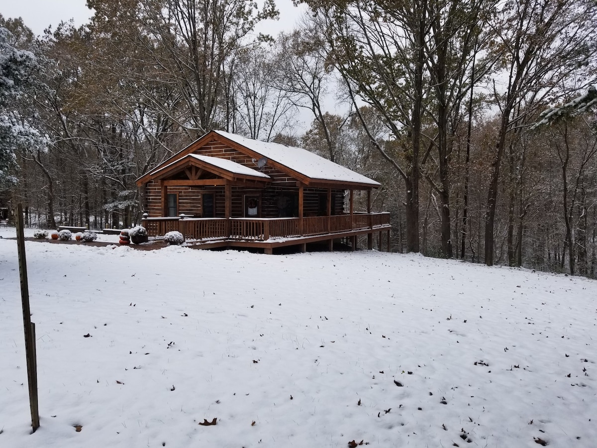 Ven a disfrutar de tu estancia en nuestra cómoda cabaña de 4 dormitorios. La cabaña tiene 3 grandes dormitorios privados, cada uno con una cama tamaño queen, el cuarto dormitorio tiene 2 camas individuales. La cabaña tiene una ocupación máxima de 8 personas con 2 baños completos. La cabaña es perfecta para unas vacaciones familiares, reuniones y parejas. 2 televisores con satélite y un DVD en 1 TV (trae tus películas favoritas). Hay un jacuzzi, parrilla de gas, chimenea, estanque de pesca (trae tu propio equipo de pesca) y una terraza abierta para descansar.