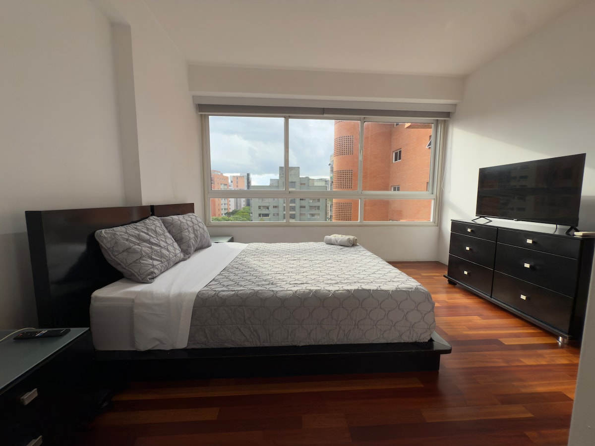 Amplio, acogedor y luminoso apartamento de una habitación con área de expansión, sala, cocina comedor y un baño, ideal para viajes de trabajo o vacaciones. Con servicio de agua constante, internet, TV por cable y un puesto de estacionamiento. Cuenta con área de piscina y gimnasio, lavandería fuera del apartamento y servicio de vigilancia las 24 horas. A tres minutos en carro de panadería y supermercados y a siete minutos de Las Mercedes, concurrida zona de negocios y excelentes restaurantes