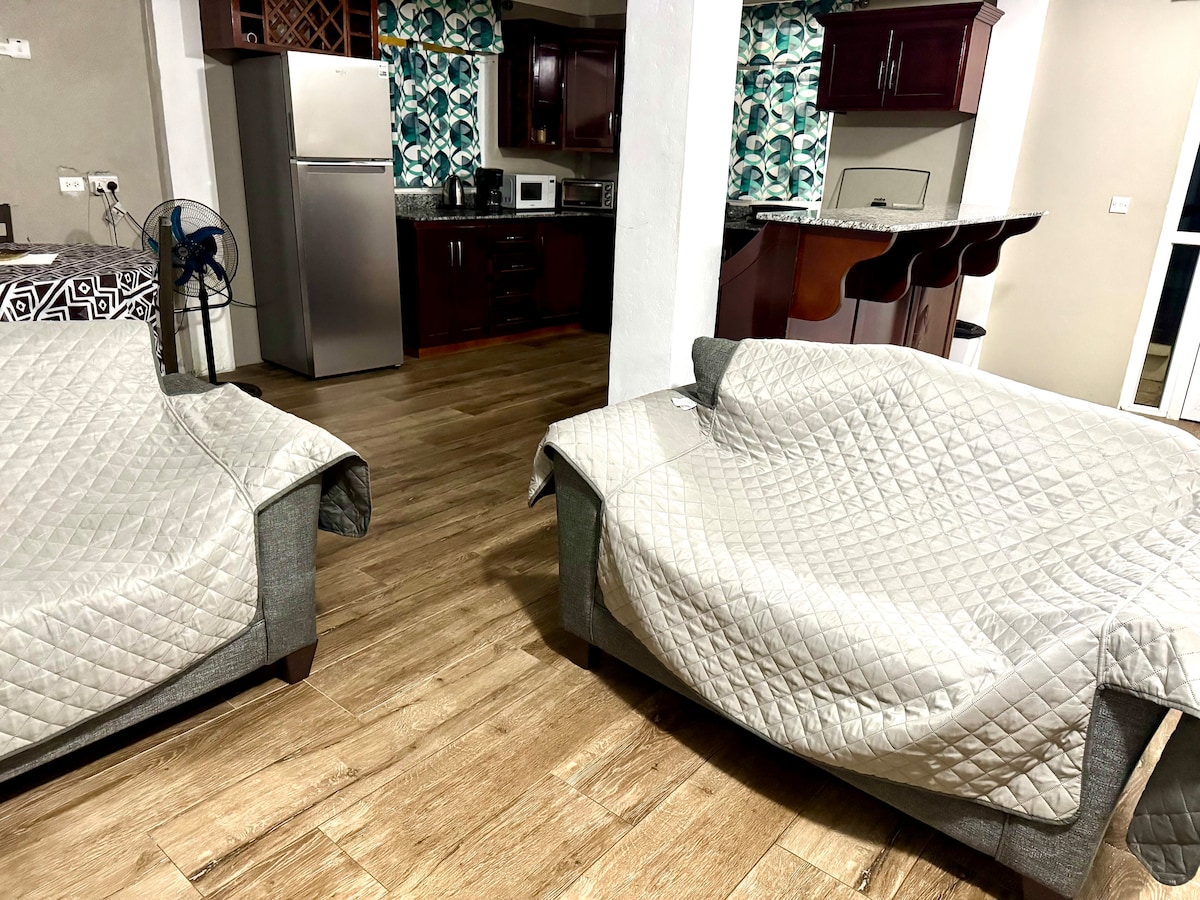 Disfruta de una experiencia de lujo en esta propiedad céntrica en la segunda ciudad de Dominica. Experimenta una sensación moderna, con vistas panorámicas al océano. Duerme con el sonido de las olas y disfruta de visitas turísticas, caminatas y excursiones culturales. La propiedad cuenta con dos apartamentos que contienen dos dormitorios, 1 baño, cocina, lavandería, sala de estar y espacio de trabajo designado. Te sentirás como en casa, el apartamento cuenta con todas las comodidades modernas para satisfacer tus necesidades personales y profesionales.