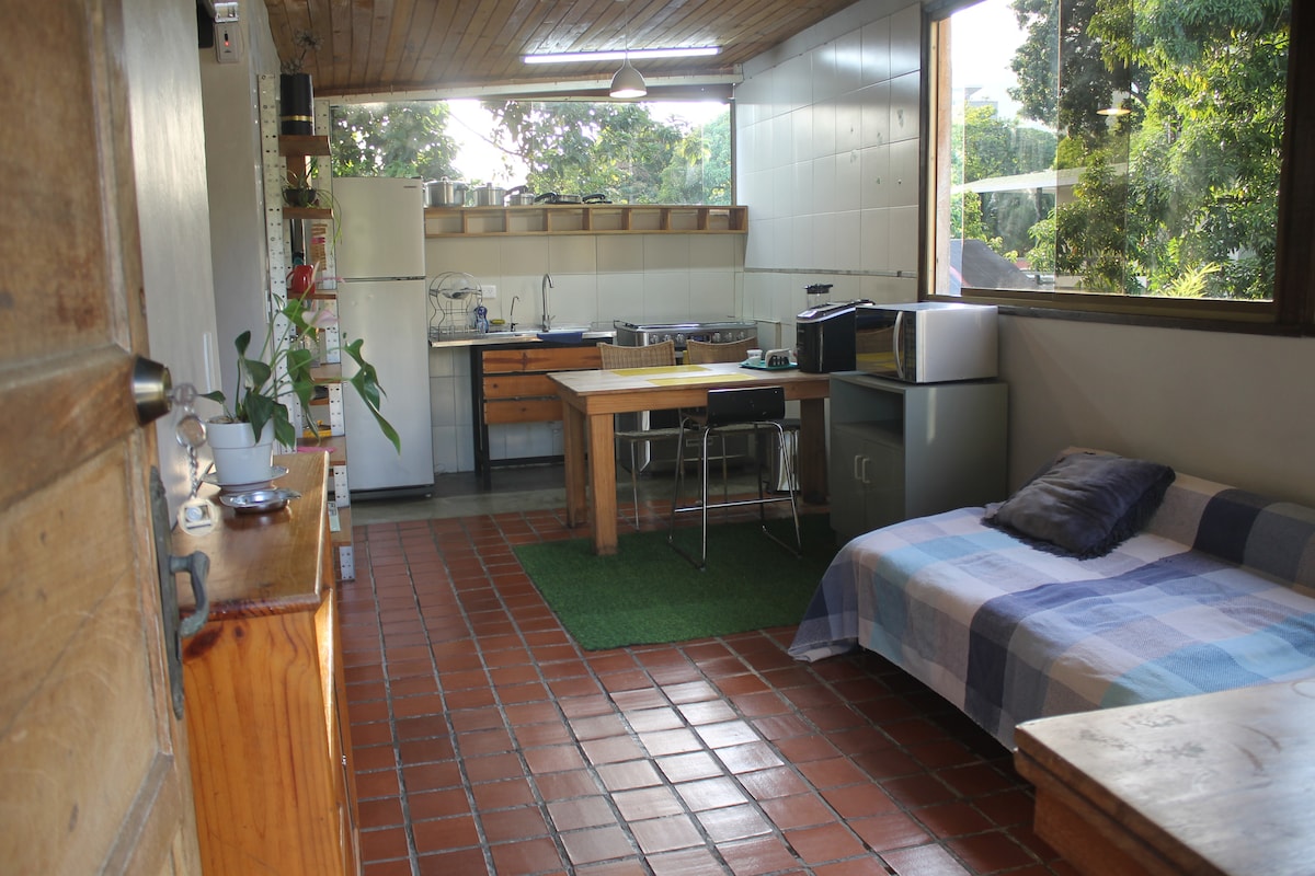 Este encantador y exclusivo lugar para quedarte no pasa por alto ningún detalle con una excelente atención para que tu estadía sea de descanso, confort, relajación, rodeado de naturaleza a tan solo 5 minutos del Pueblo El Hatillo. Experiencia cálida y acogedora de alojamiento para el huésped. Acompañado de una cocina casera sana "comfortfood" y bebidas a su servicio. Habitación doble sin desayuno incluido. Tu A&A Alojamiento y Alimentación. Habitación de 15m2 con cama Matrimonial, A/A -Wifi -TV