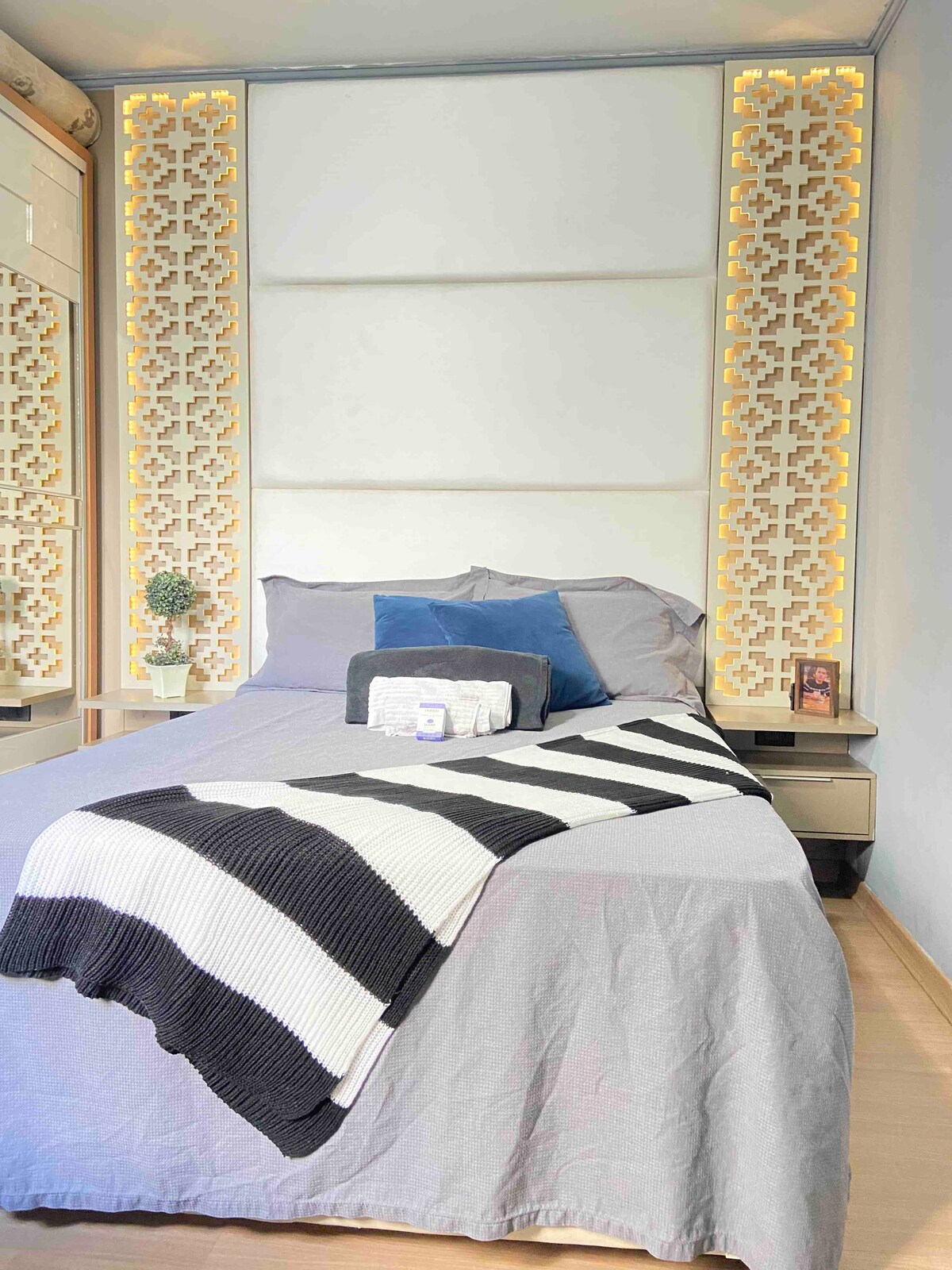 Departamento con 2 dormitorios, 1 de ellos suite. Tiene 1 cama queen, 1 cama doble, 1 cama individual. La propiedad se encuentra en una zona privilegiada de Vitória, cerca de Shopping Vitória, panaderías, bares, restaurantes, mercado, playa de Guarderia y Curva da Jurema. El departamento es muy acogedor y nuestro conserje está abierto 24 horas. El edificio tiene un mini mercado en la azotea. Espacio El apartamento está completo, incluido el aire acondicionado en las dos habitaciones. Otras notas: Proporciono ropa de cama y toallas.