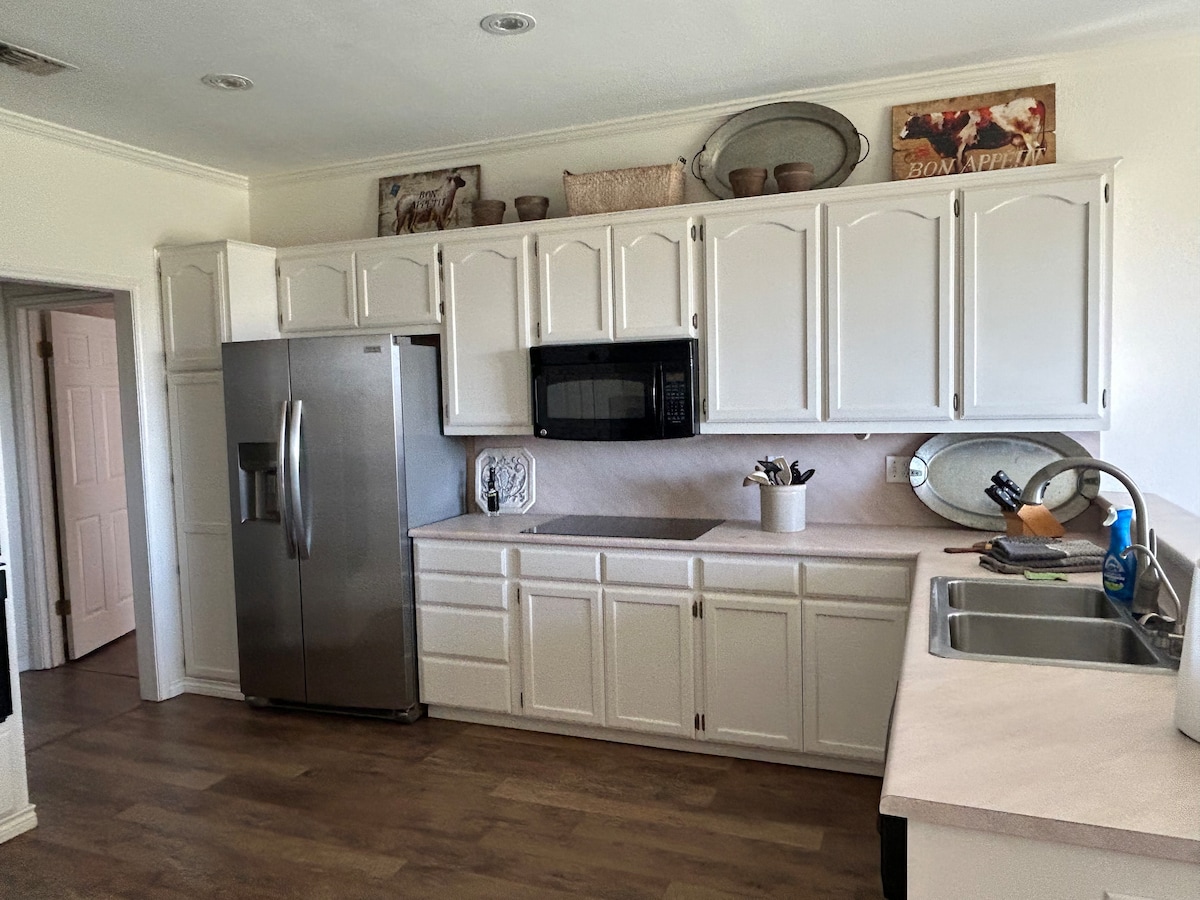 Relájate con toda la familia en esta casa de dos dormitorios. Deja atrás el bullicio de la vida cotidiana en este lugar tranquilo. Estamos a solo 7 minutos de todos los maravillosos restaurantes, bares y tiendas del centro de San Angelo, así como de la Universidad Estatal de Angelo. Si estás en la ciudad por razones médicas, apreciarás la proximidad al Hospital Shannon. Si estás visitando a familiares militares, te encantará estar a solo 10 minutos en coche de la base aérea de Goodfellow.