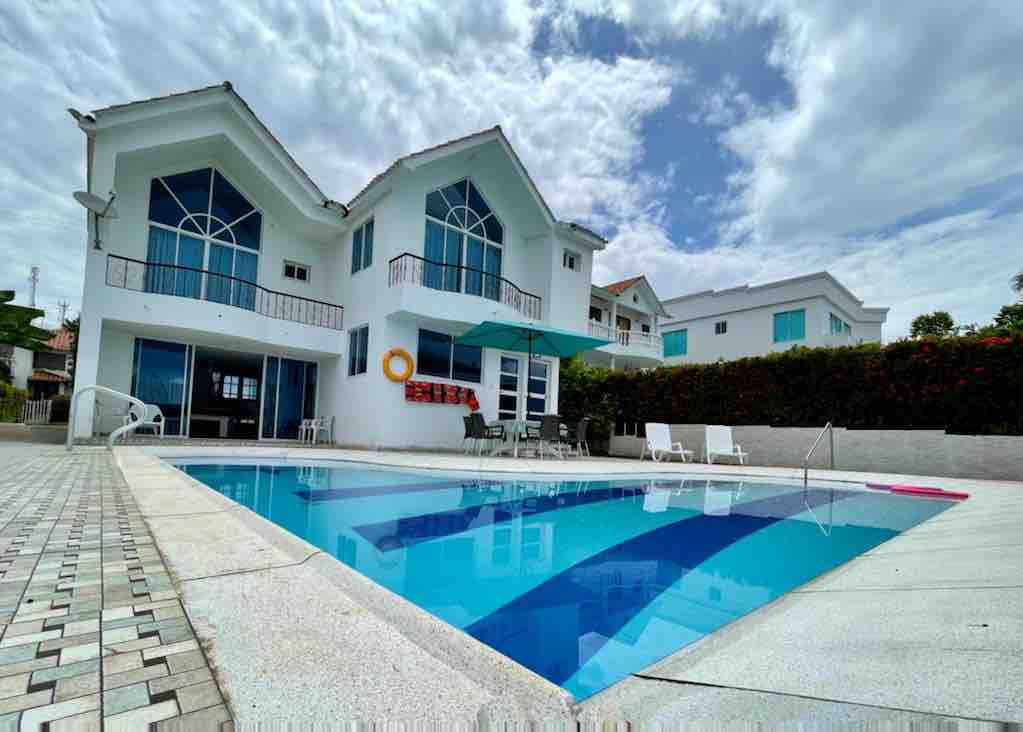 Tu escape perfecto en Lagos del Peñón! Casa de lujo en conjunto cerrado: 4 habitaciones con baño privado, A/C y abanicos. Sábanas y toallas incluidas. Una habitación con TV satelital. Zona social soñada: piscina, jacuzzi y BBQ para asados. Sala principal y sala de estar con TV satelital. Amplia cocina con dotación completa y un amplio comedor. Baño social. Ultra Wi-Fi 150 MB. El conjunto ofrece canchas de tenis, excelentes senderos para caminar y un entorno ideal para compartir en familia.