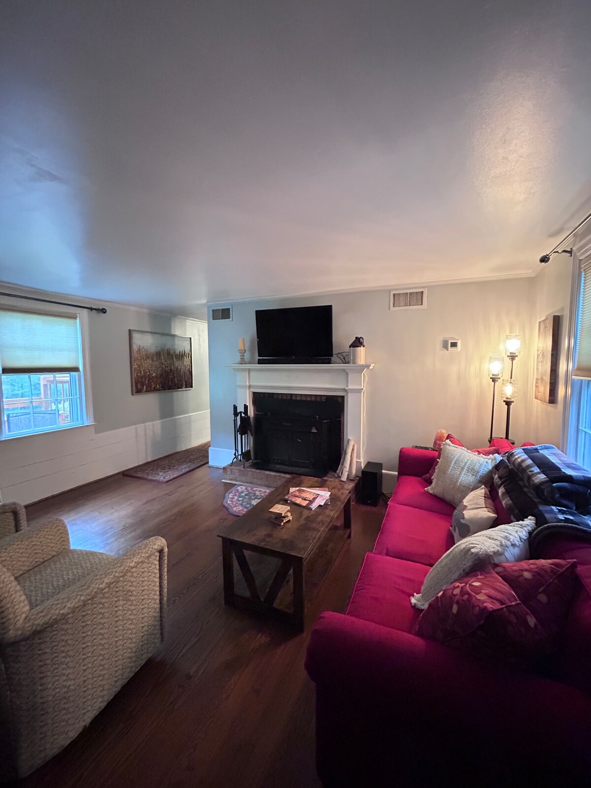 Sumérgete en la historia en nuestra granja de 1700 en la encantadora Bowling Green, VA. Esta joya histórica combina el encanto del viejo mundo con comodidades modernas para una estancia inolvidable. La casa de la calle principal cuenta con suelos de madera originales, chimeneas antiguas y detalles arquitectónicos conservados. Cada habitación refleja cuidadosamente la historia de la casa y ofrece comodidades modernas. Durante la Navidad, la granja está adornada con luces parpadeantes y adornos festivos, añadiendo un toque mágico navideño a tu estancia.
