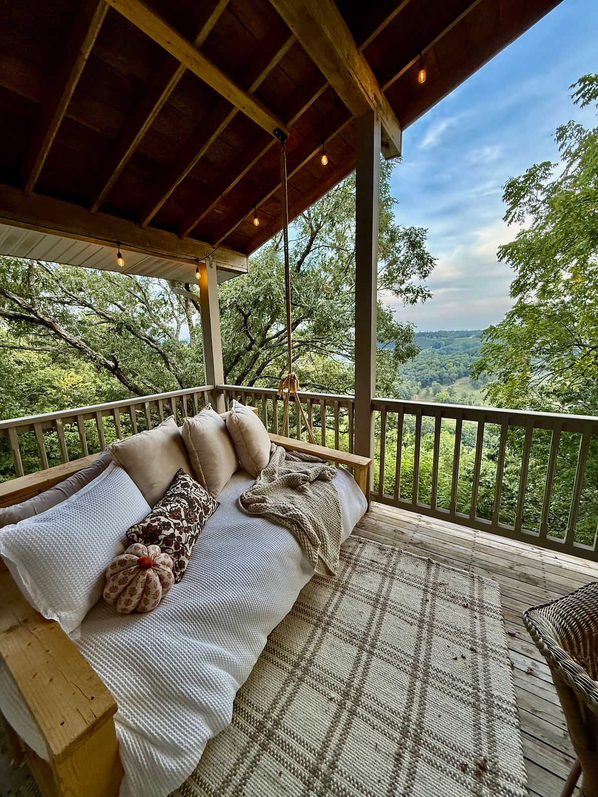 Te encantará este alojamiento único y romántico en las colinas de Ozark. Por la noche puedes contemplar las estrellas en el jacuzzi. La gran chimenea de piedra te dará un tiempo para acurrucarte y sentir el calor. La cama tamaño queen tiene 2 ventanas frente a las vistas espectrales de las colinas de Ozark. La cocina tiene la disponibilidad de utilizar muchos utensilios para dominar tus comidas. El baño tiene una bañera de hidromasaje para sumergirte mientras te da la opción de una ducha. Vistas arboladas muy privadas.