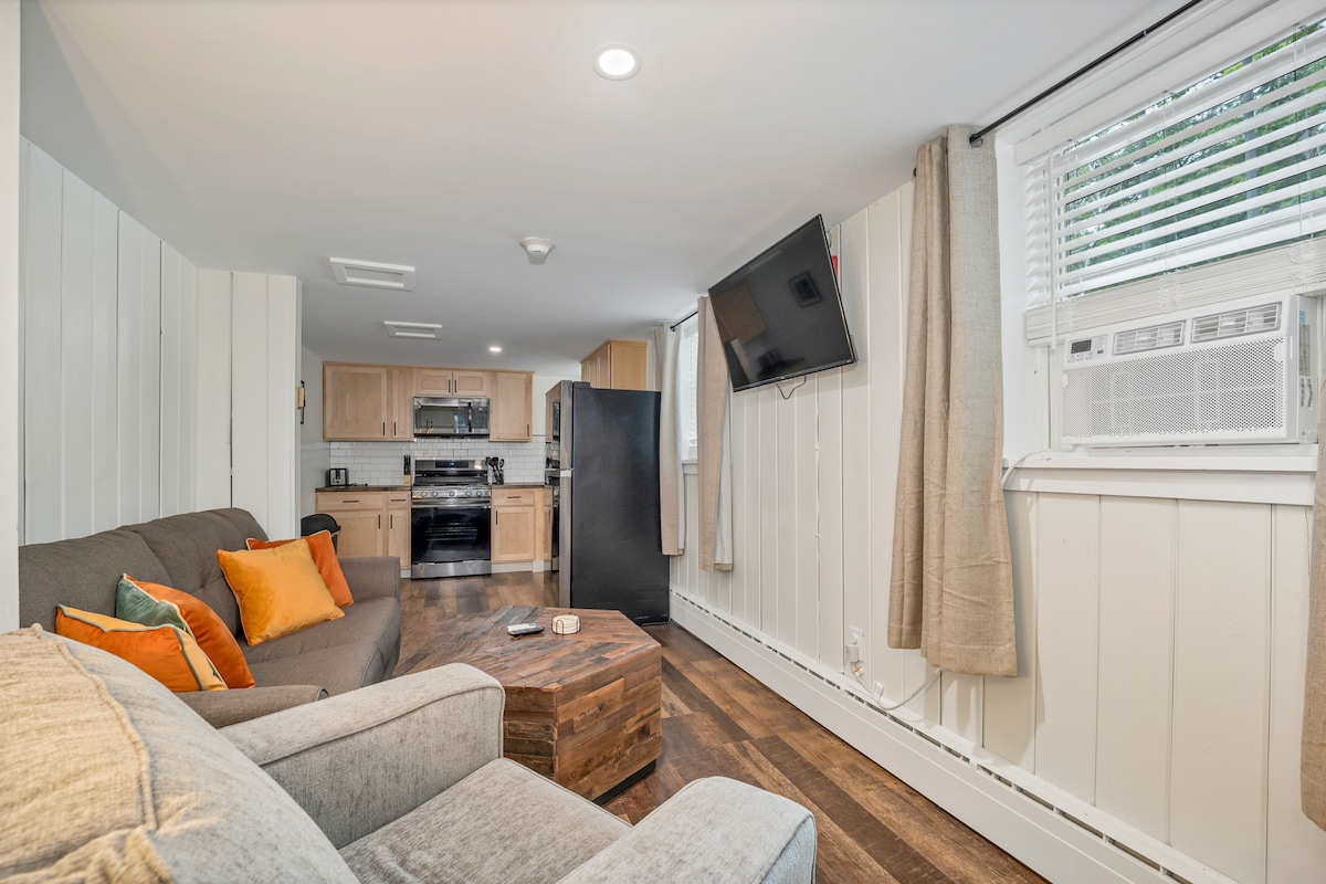 Más senderismo, más esquí, más compras, más restaurantes y más diversión: hay algo para todos en las Montañas Blancas, y The Inn & More es tu base de operaciones amigable y confiable para hacerlo todo. Disfruta de la facilidad y la relajación de este refugio recientemente renovado de Nueva Inglaterra, donde la clásica carretera americana se combina con la comodidad y el confort modernos con el hermoso telón de fondo de las Montañas Blancas y el río Saco. Disfruta de este alojamiento de 1 dormitorio y 1 baño renovado con cocina totalmente equipada y sofá cama.