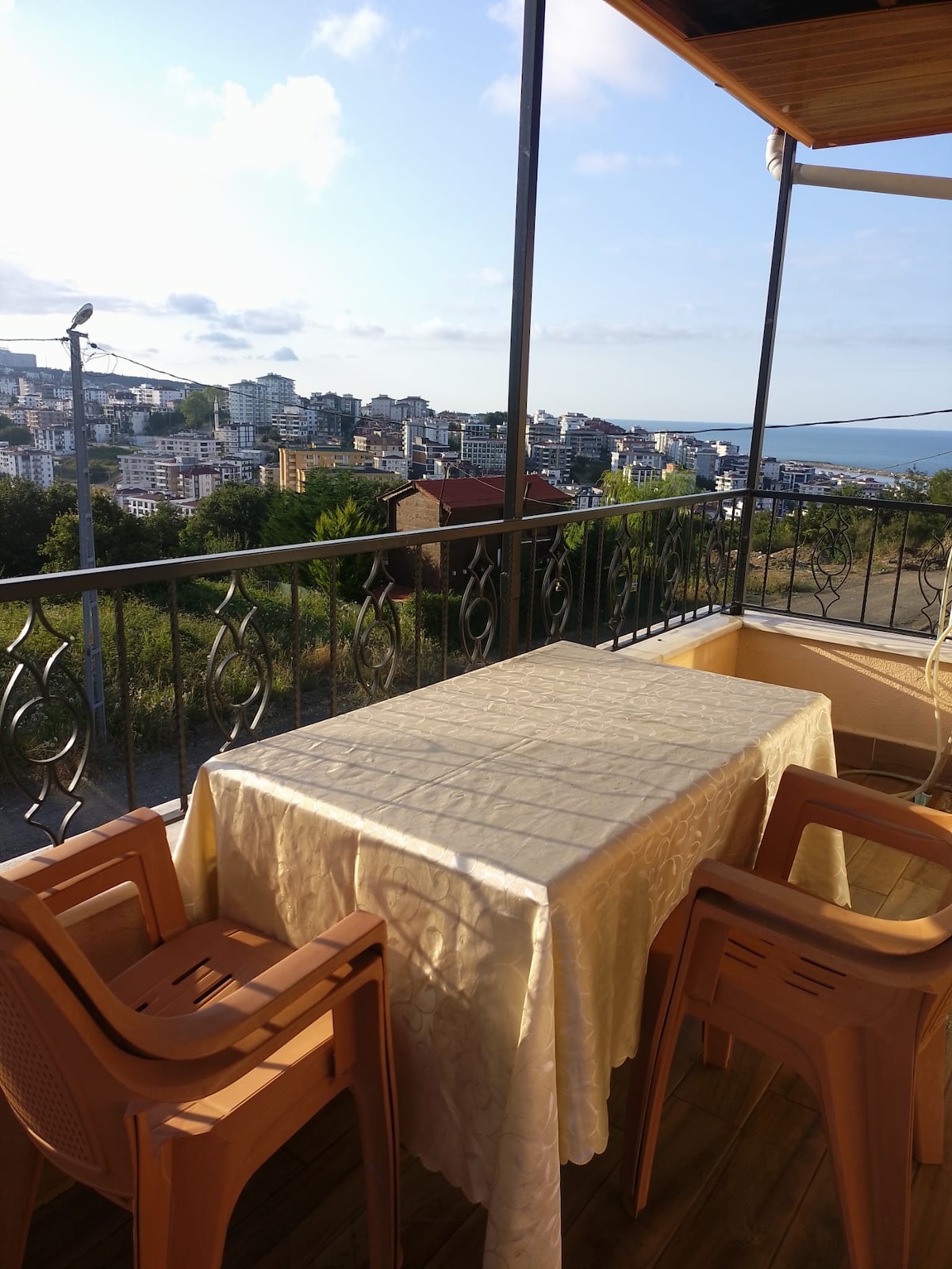 Samsun'un en nezih semtinde özenle döşenmiş evimiz sizlere temiz güvenli bir konaklama sunacaktir.Sahile aracla 2dk mesafede..Evde tv,buzdolabı,camaşir makınesı,elektrıklı ocak,cay kahve,tost makınesı ayrıca,cay kahve nescafe,sıvıyag,bulasık,camasır detarjanı temiz havlu,nevresim,şampuan ve duş jeli wc kağıdı ve genel temizlik malzemeleri bulunur,r25 m2lik balkonu dağ deniz ve şehir manzaralidir,Her msafir sonrası detaylı temizlik yapılır.Genş aile ve arkadaş gruplari için çok ıdealdır