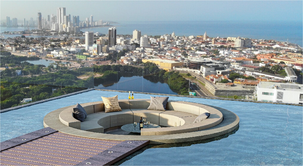 Exclusivo apartamento piso 30 Morros City con vista increíble y cautivadora al mar y centro histórico. Habitación principal con vista directa al mar y acceso al balcón. Cocina completa, lavadora y secadora 2 en 1, Smart TV 60", WiFi 500MB fibra óptica. Frente a la playa en Bocagrande con amenities de lujo: piscina, jacuzzi, turco y gimnasio. Parqueadero gratis. Ideal para parejas que buscan la experiencia más exclusiva desde el piso más alto disponible en toda Cartagena.