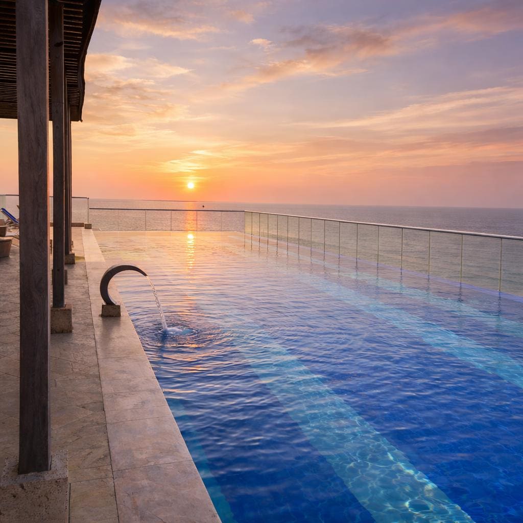 🌊 Penthouse de lujo frente al mar en Cartagena☀️ Despierta con una vista panorámica al océano y al Centro Histórico. La playa está justo al frente del edificio, ideal para bajar y darte un baño cuando quieras. Ubicado en una zona privilegiada, cerca de centros comerciales, restaurantes y a solo 10 minutos del Centro Histórico. 🏢El edificio cuenta con piscina, jacuzzi y gimnasio. Incluye sala cómoda para trabajar con wifi rápido y estable.