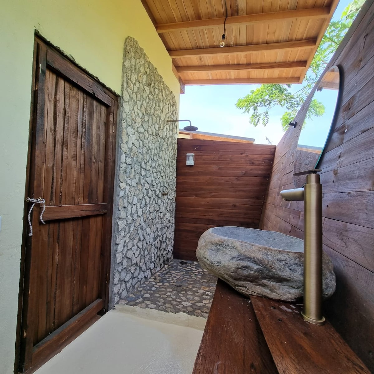 Villa Coches at Tiny Village Cartagena our most cozy, and charming villa. This single floor villa sports and our most spacious bathroom, our largest front door entrance and a uniquely designed back patio facing the mangroves. These specific design choices along with the entrance ramp have allowed this villa to also be ADA accessible for guests with disabilities.