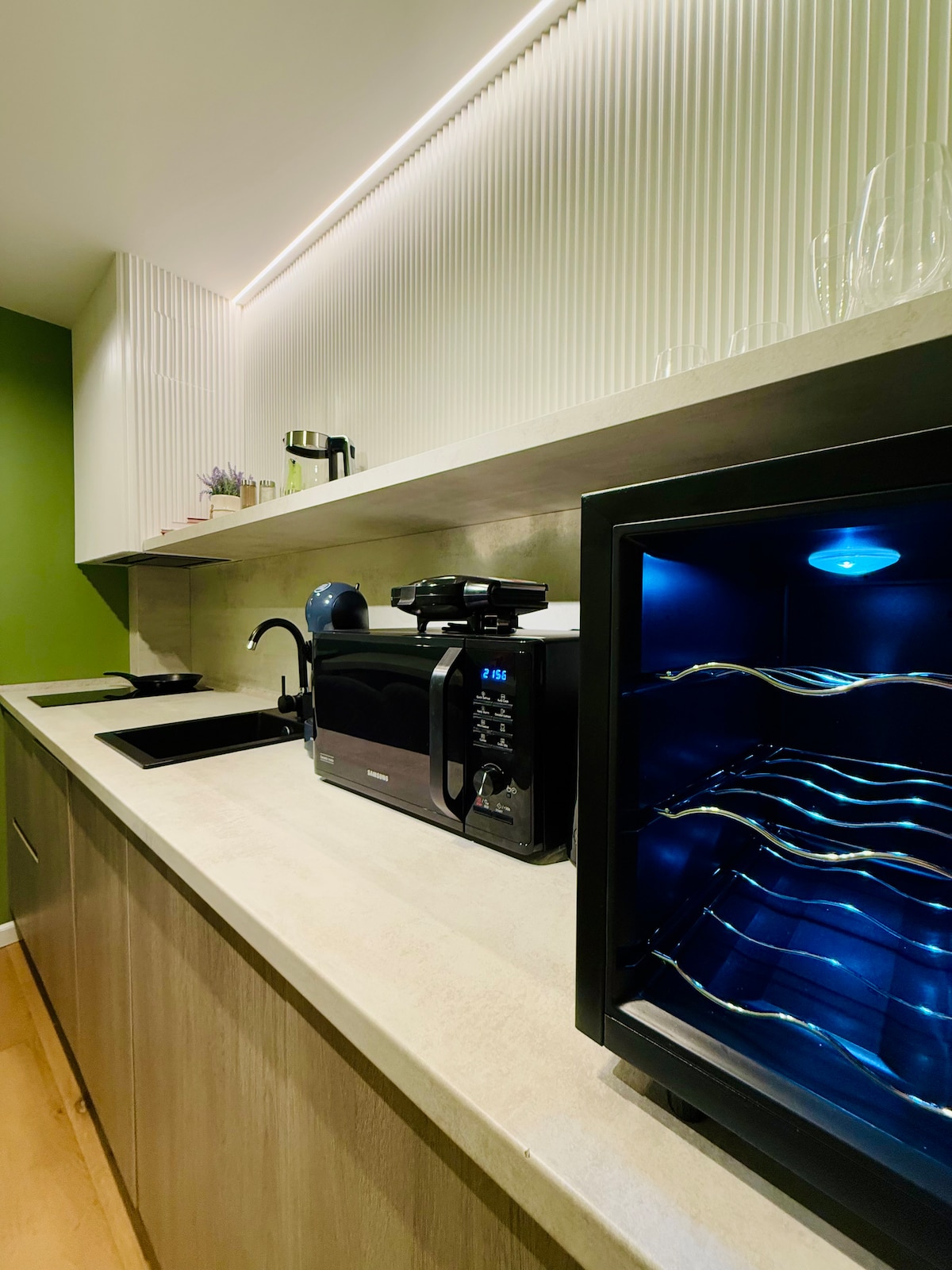 Departamento de 2 dormitorios recién diseñado con un toque moderno. Tiene un diseño flexible para que puedas convertir la segunda habitación en un dormitorio, espacio de oficina privado o simplemente una extensión de la sala de estar. Las puertas correderas te darán la máxima libertad para ajustar el espacio a tus necesidades. El dormitorio tiene una cama tamaño queen y mucho espacio para guardar. En el armario del pasillo hay espacio de almacenamiento adicional. Hay un Smart TV (+NETFLIX) , un proyector, una lavadora, una cafetera exprés y una cocina totalmente equipada.