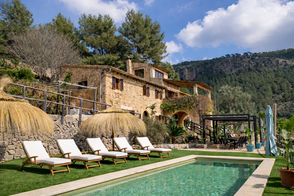 Te ofrecemos nuestra maravillosa casa ubicada en la Sierra de Tramontana, rodeada de impresionantes montañas y naturaleza. La casa tiene un terreno de 2000 metros con piscina, grandes terrazas y distintos espacios para relajarse y disfrutar de la tranquila zona y de sus paisajes. La decoración es acogedora y la casa muy confortable,cuenta con numerosos extras para que no te falte de nada. Esperamos que te sientas como en casa y que disfrutes de tu estancia tanto como nosotros.