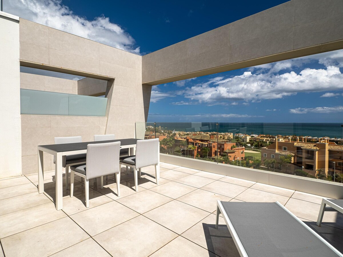 Welcome to this stylish and relaxing apartment with 2 bedrooms / 2 bathrooms and large covered terrace with sea views and amazing sunset views every night Guests have access to 3 swimming pools with sun loungers and many green areas Smart TV, fast wifi, cold AC, underground parking all included It is a 7 min drive to Estepona and 2 min to many supermarket, it is close to Marbella, Puerto Banus, Sotogrande, Ronda and other destinations of interest Clubhouse with resturant only a 5 min walk