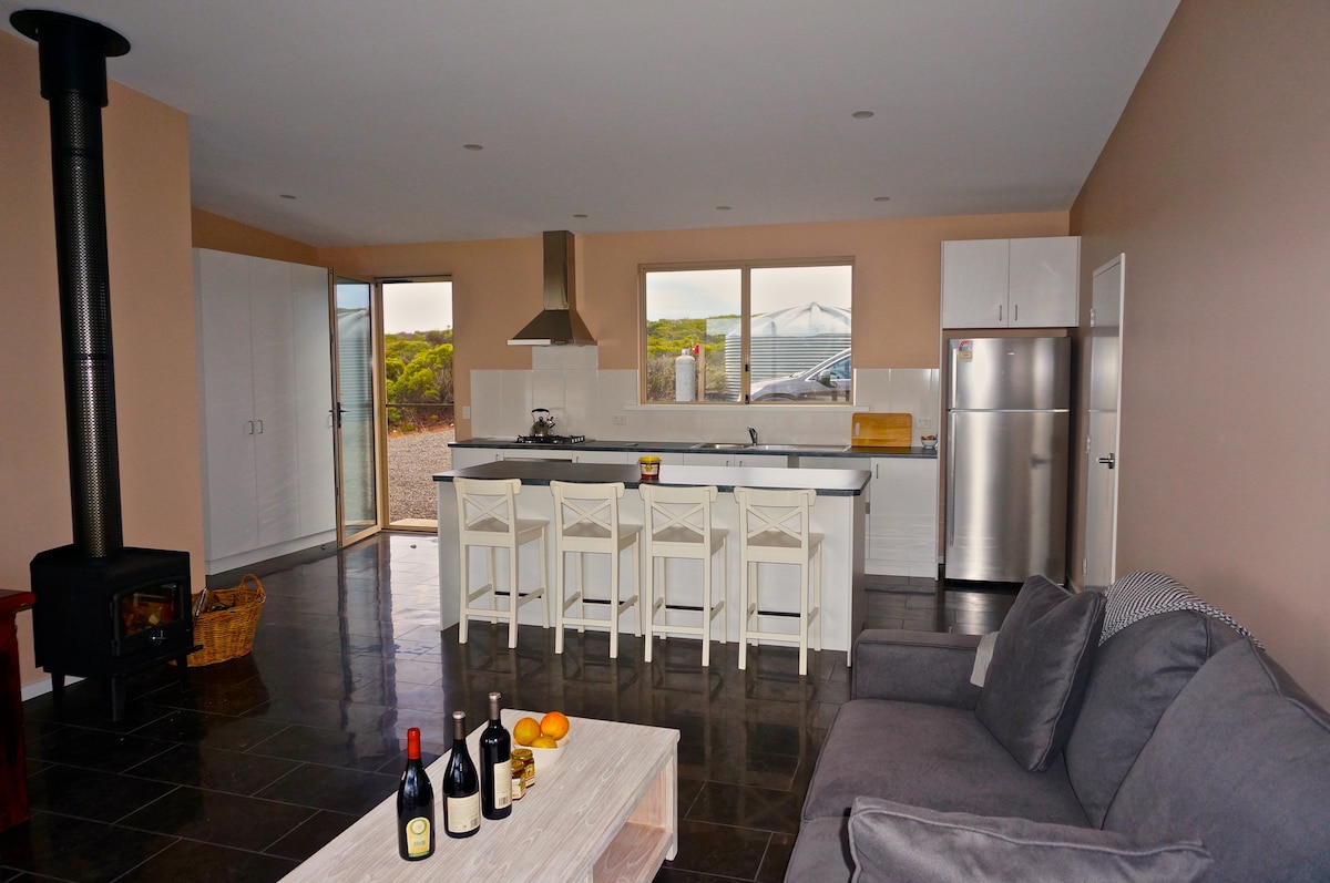 Dusty 's Run es nuestra casa de campo moderna recientemente renovada. Una ubicación perfecta para un retiro en pareja o una escapada familiar, que permite a los huéspedes y a sus mascotas relajarse. La propiedad está situada en 60 acres de pastos con chicle y arroyos de invierno, con un patio seguro con césped. La pintoresca perspectiva rural se disfruta desde todas las habitaciones de la casa. Un acogedor fuego central agrega calidez a la cocina de planta abierta y a las áreas de estar. Emu Bay y Kingscote están a 10 minutos en auto.
