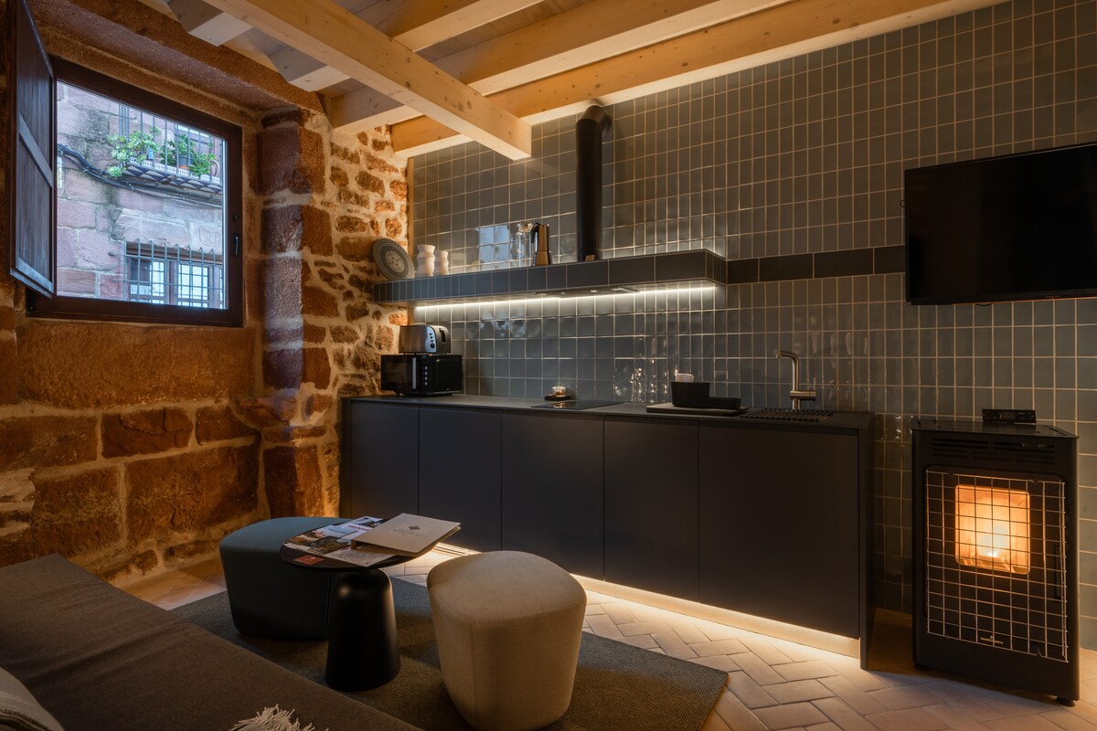 Apartamento en un edificio situado en el casco histórico de Vilafamés,uno de los Pueblos Mas Bonitos de España. El edificio fue un antiguo palacio del siglo XVI, transformado en casa señorial a finales del SXVIII que ha sido rehabilitado con criterios de sostenibilidad, manteniendo la construcción tradicional a la vez que introduciendo un interiorismo basado en los colores de Vilafamés.