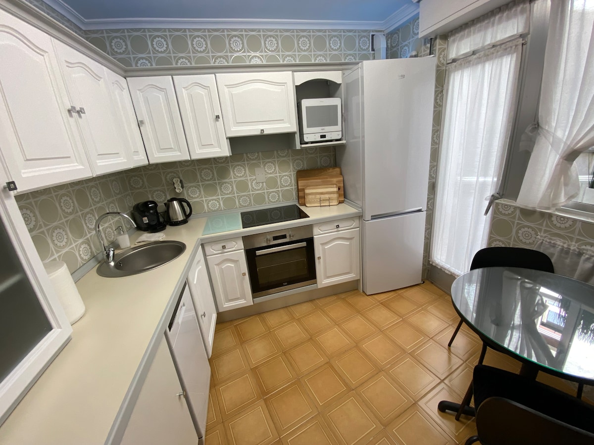 Alojamiento amplio e ideal renovado con: cocina integrada totalmente equipada con gran frigorífico, sala de estar, smartTV, cómoda habitación doble, armario y baño. Parking gratuito en la zona. Internet 5G, A/C y calefacción. Planta baja con acceso directo a la calle. Muy bien comunicado: >4 Torres , 9 mins >Torre Caleido, IE University, 12 mins >Hosp. Ramon y Cajal y tren Cercanías, 5 mins >Hosp. La Paz, 8 mins >Estación de Metro Begoña, 5 mins >Centro (Plaza de España), a 20min, metro línea 10