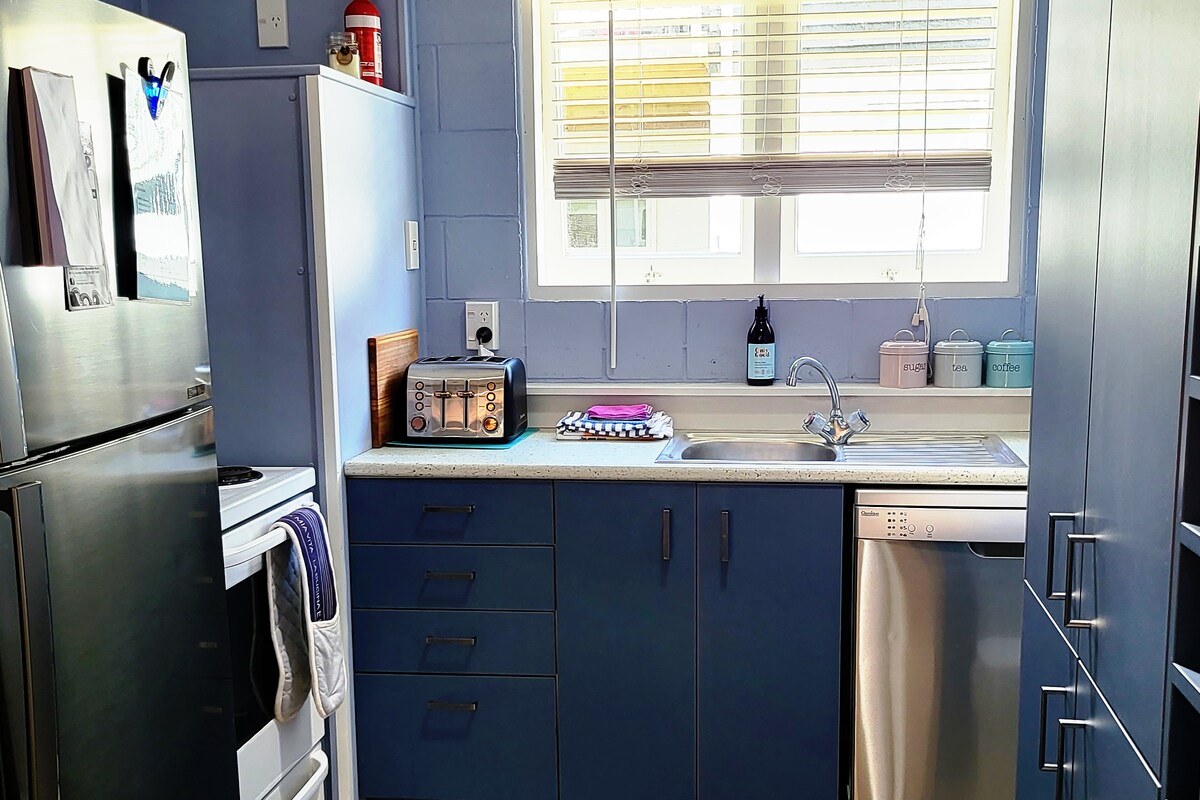 Not only are you beachfront but around the corner from the golf club and tennis courts. This wee gem is one of five holiday bachs, so respect of the other owners is premium, as is yours. You have your own very private, sun drenched sheltered deck with a bbq provided. A queen bed in one room, and a double and single in the other. The kitchen has all your essentials and even a dishwasher. There is a TV with a Chromecast, children's games, toys and videos are plentiful. Walk in and just relax.