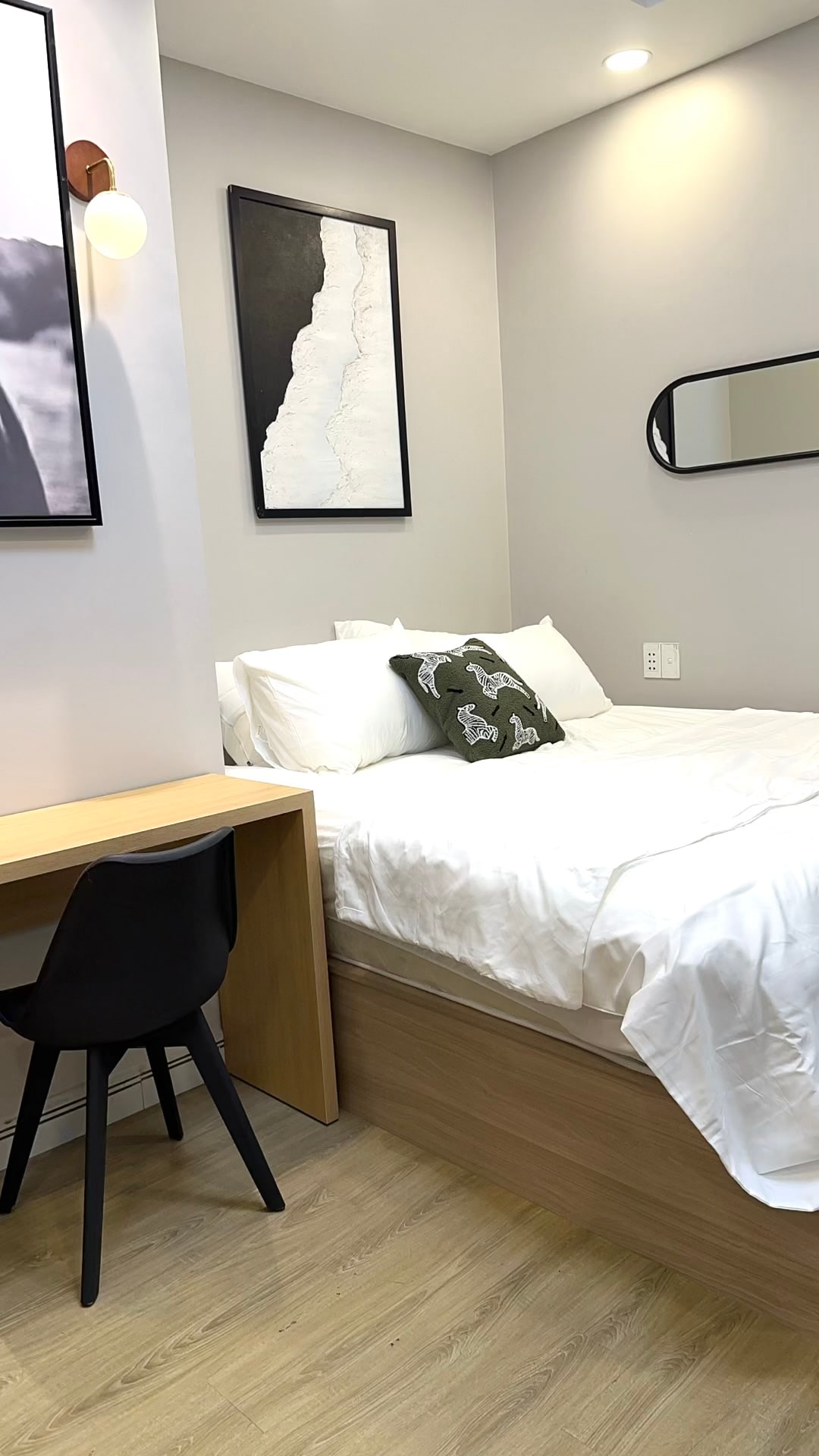 Establecidos en 2023, ofrecemos apartamentos con servicios de alta calidad para estancias cortas y largas ubicados justo en una calle concurrida con famosas cafeterías, restaurantes, Circle K y tiendas de comestibles cerca y a solo unos minutos a pie de la calle peatonal Bui Vien y del parque Tao Dan. Rentables en comparación con los hoteles, ofrecemos apartamentos de 1 dormitorio con servicios, privacidad, estilo moderno, cocina, balcón, puertas y ventanas insonorizadas, espacio de escritorio para trabajar, jardín en la azotea, ascensor, limpieza regular y las comodidades de un «hogar lejos del hogar».