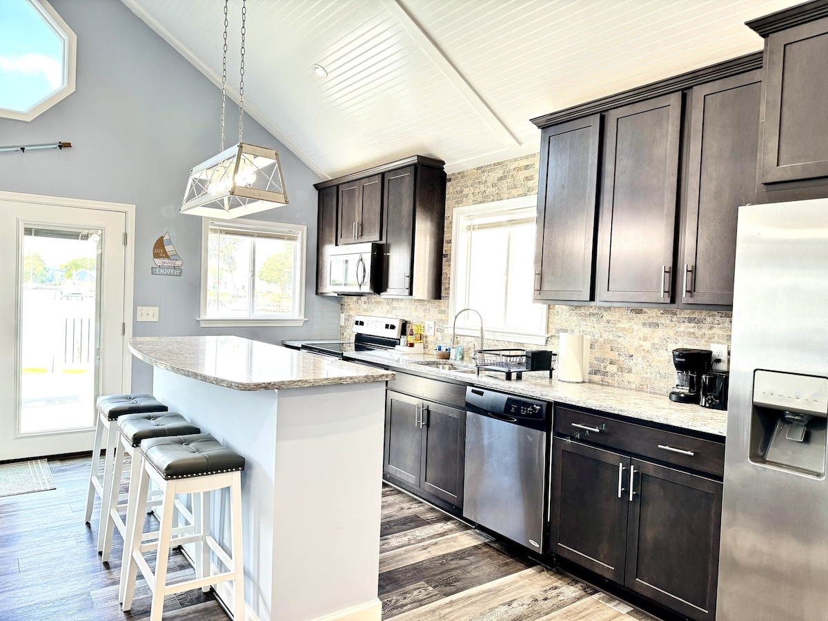Entra en un apartamento de concepto abierto generosamente espacioso. El cómodo mobiliario de esta casa combina estilos auténticos con un diseño moderno. Comienza tus mañanas con un baño meticulosamente limpio. Disfruta de una noche de cine en la gran sala de estar o acuéstate en la cómoda cama tamaño king. Lee toda la noche junto a una cálida estufa. ¡Quédate en el patio trasero y disfruta de la serenidad de Sykesville! Disfruta de internet de alta velocidad y del amplio espacio para tus necesidades de trabajo en casa. Quédate un rato y haz del lugar tu hogar.