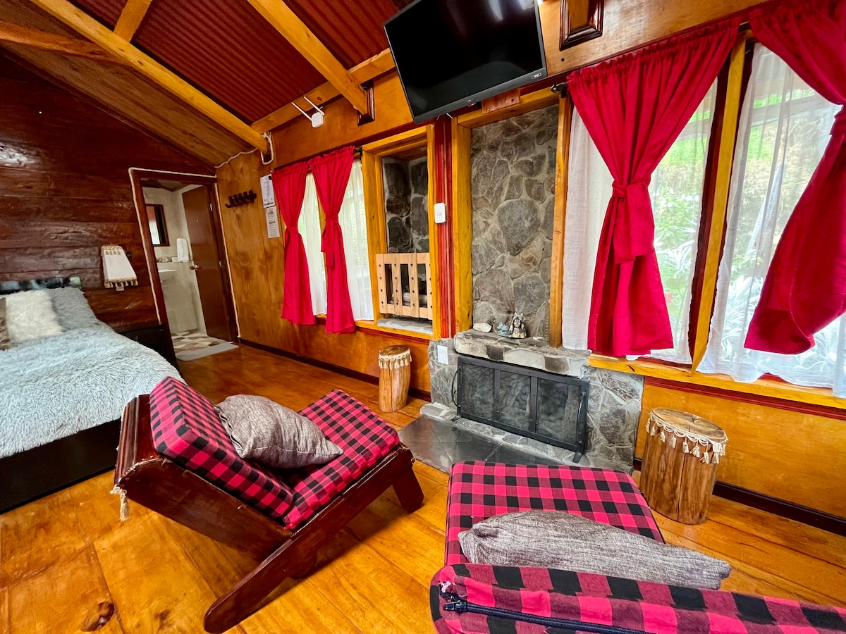 Despierta con el sonido de los pájaros y relájate en la tranquilidad de nuestro hermoso Ecolodge. Es un lugar acogedor hecho con materiales naturales. El Ecolodge te invita a relajarte en la calidez de una romántica chimenea y un jacuzzi. Es ideal para personas que busquen un toque de lujo en la naturaleza. Tiene un baño moderno con agua calentada por energía solar. El desayuno está incluido en la tarifa y se servirá en la habitación. Nuestro restaurante ofrece menús para el almuerzo y la cena.