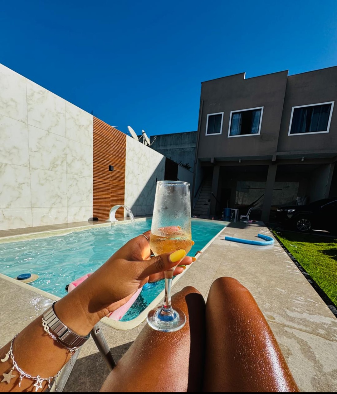 *3 minutos a pé da praia* WIFI POTENTE GARAGEM - 2 CARROS 3 quartos, 1 suíte, sala de tv smart. ar condicionado em todos os quartos e ventilador! espaço home office. Churrasqueira, área de lazer completa, piscina, jardim, espaço gourmet. enxoval: roupa de cama e banho disponíveis. Utensílios disponíveis. Localização: Área nobre da Costa do Sol, a uma rua da praia em rua familiar, próximo a restaurantes, padarias, conveniência 24h e academia. pet friendly!!