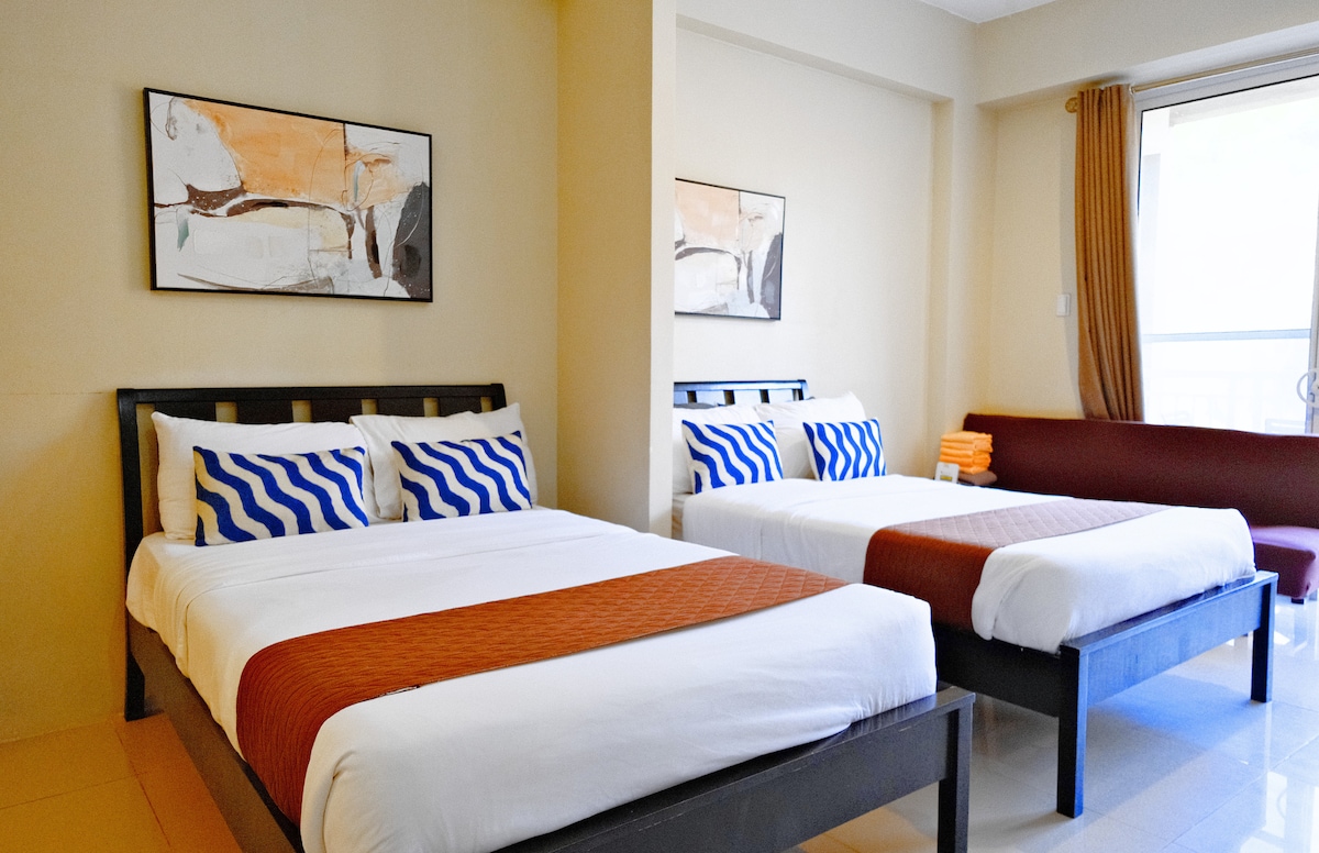 Mi apartamento es una unidad tipo estudio de 34 metros cuadrados ubicada cerca de Sky Ranch y de los mejores restaurantes de la ciudad. Tiene una pared de cristal con una vista perfecta del lago Taal y del volcán. El alquiler de la unidad incluye wifi (25 mbps), TV con Netflix, cine en casa (barra de sonido), aire acondicionado, servicios básicos (ropa de cama, toallas, champú, acondicionador, jabón, pasta de dientes, cepillo de dientes, loción, zapatillas), calentador de agua de ducha y plaza de aparcamiento gratuita cerca de la entrada principal del vestíbulo. El número máximo de huéspedes permitidos es de 4, incluidos los bebés.