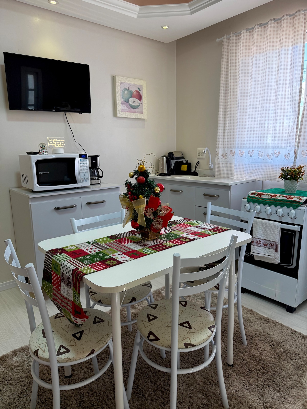 Apartamento ubicado en el centro de Caxias do Sul, a una cuadra de la plaza Dante Alighieri. Cuenta con un dormitorio espacioso con cama doble, televisión, Wi-Fi, armario espacioso, baño, sala de estar, cocina con microondas, cocina, mesa de comedor y lavandería. El apartamento cuenta con utensilios de cocina, secador de pelo, artículos de higiene, sábanas y toallas. No tenemos garaje, pero hay dos estacionamientos rotativos en la misma cuadra.