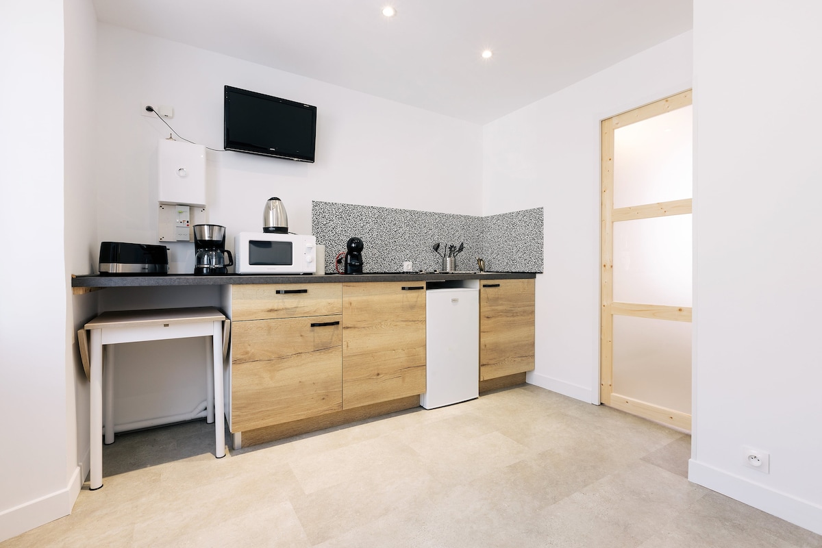 Pequeña casa adosada a otra casa de campo y donde también está nuestra residencia principal. Estacionamiento seguro El alojamiento reformado.(2023) Pequeña casa de 25 m2 en planta baja Tendrá a su disposición: - una sala de estar cocina con cocina equipada (horno. microondas, placas eléctricas, lavadora) y televisión. Acceso directo al exterior -undormitorio con cama doble 140 y armario armario -un cuarto de baño con ducha e inodoro. Se proporcionan sábanas y toallas