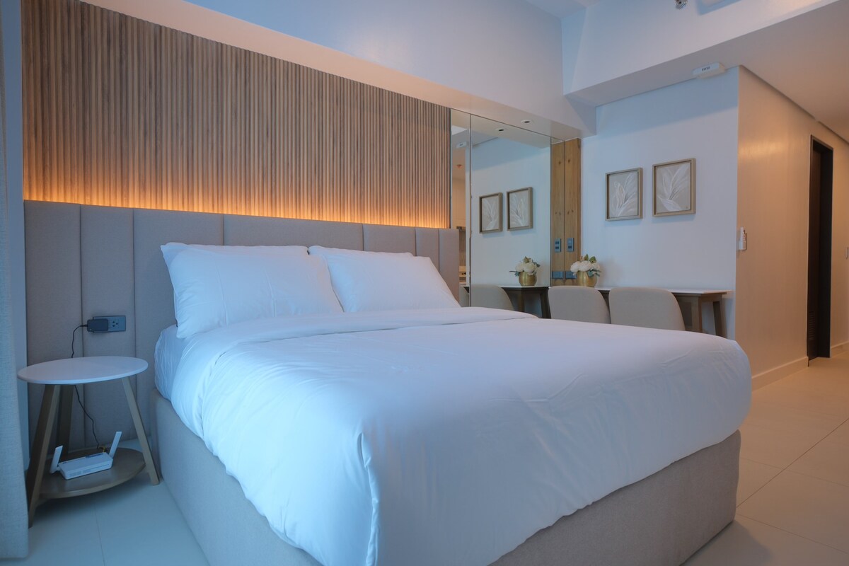 Un estudio luminoso de inspiración mediterránea en Baseline Prestige, en la zona residencial de Cebú, diseñado para disfrutar de la ciudad y escapadas a la isla. Despertá con los tonos suaves de la costa, trabajá con fibra rápida y caminá a cafés, centros comerciales y hospitales a solo minutos de distancia. Comodidad de hotel con detalles prácticos: agua potable filtrada, ducha con agua caliente y una cocina pequeña totalmente equipada.