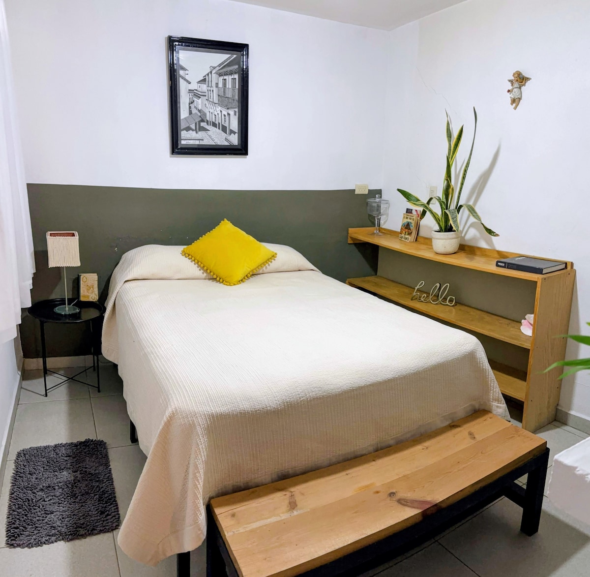 Suite ejecutiva con cocineta en circuito privado y vigilancia 24/7. Ideal para viajeros de negocios y parejas que buscan privacidad, seguridad y comodidad cerca de Galerías Celaya (5 min) y el centro histórico (10 min). Incluye WiFi rápido, estacionamiento, entrada autónoma con código digital y área de lavandería.