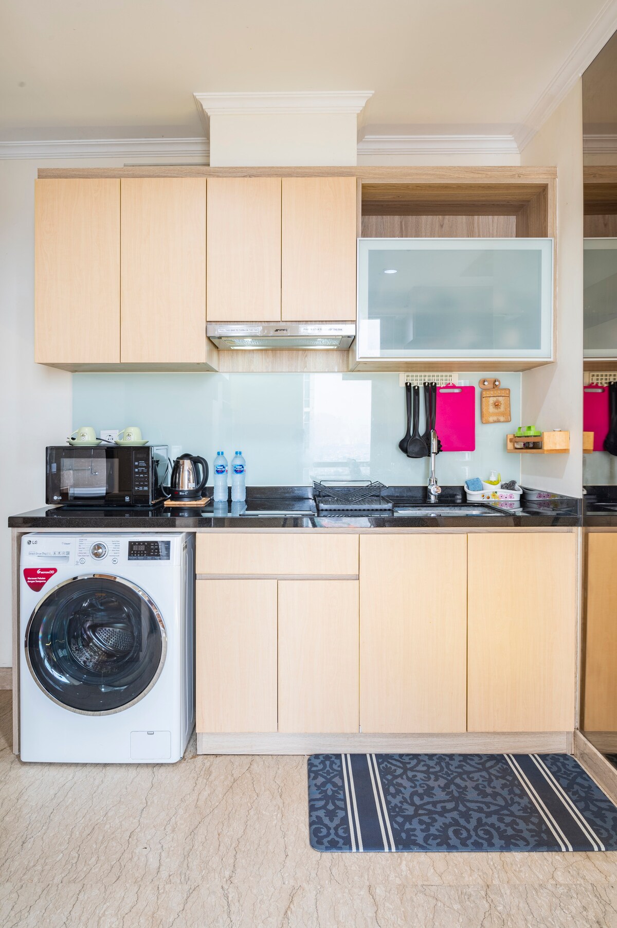 Apartamento estudio de lujo (32 metros cuadrados) ubicado en el corazón de Yakarta, la vista es increíble, totalmente amueblada, bien diseñada con muebles de alta calidad y cuenta con todas las comodidades necesarias. Equipado con un moderno conjunto de cocina, y además, el complejo de departamentos tiene un guardia de seguridad las 24 horas.
