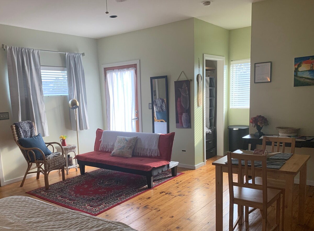 Sunset House es una encantadora casa de carruajes de un dormitorio y 500 pies cuadrados en la histórica Maple Ridge. Capacidad para 4 personas (cama tamaño queen, sofá cama tamaño queen). Cocina completa actualizada. Baño completo con vestidor. Se admiten mascotas. Ubicados justo al lado del centro de la ciudad, estamos cerca de Utica Square, Cherry Street y Brookside, que ofrecen lugares fabulosos para cenar y comprar. A poca distancia a pie de The Gathering Place. Hospital a 5 minutos. Aeropuerto a 20 minutos.
