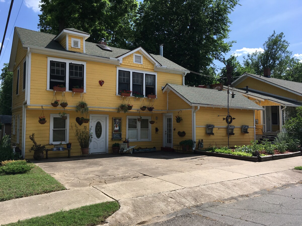 Casa de campo independiente en el centro histórico del barrio de Tulsa. Cocina completa, cama, escritorio, sala de televisión, ducha, patio vallado con fuente de agua, asientos. A una manzana de los senderos para ciclistas/peatones de River Parks, 3 parques; a seis manzanas de The Gathering Place, a poca distancia a pie de restaurantes, bares y cafeterías. A más de 1 milla del BOK Center, atracciones del centro y distritos de arte. ¡Cerca de la Ruta 66! ¡Acogedor y privado retiro con patio, zona vallada para cachorros y servicios excepcionales!