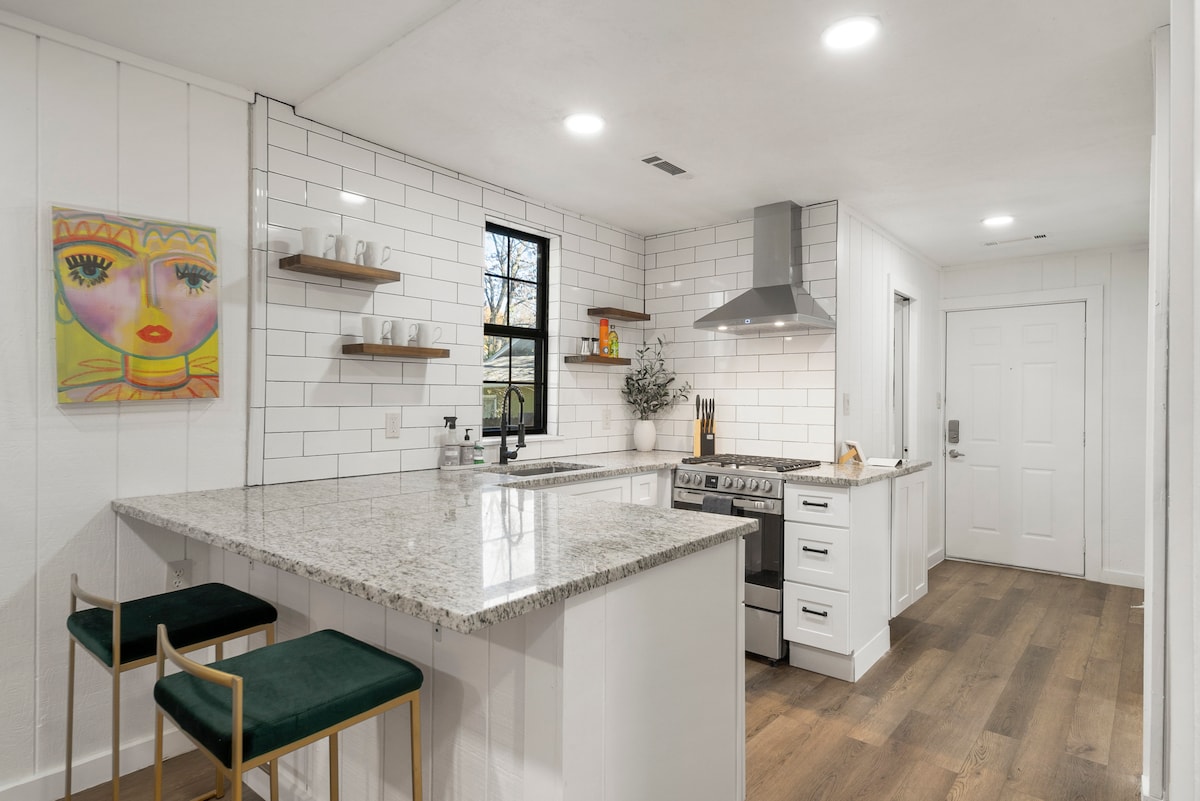 ¡Apartamento tranquilo y lujoso en el corazón del histórico barrio de Maple Ridge, a 150 pies del borde del parque Gathering Place de 100 acres! Más de 600 pies cuadrados de espacio cuidadosamente diseñado son tuyos. Todos los toques de la más alta calidad, incluido un dormitorio privado y una amplia sala de estar. Cerca de todo en Tulsa: a 2 millas del centro de la ciudad, a 1 milla de Brookside, a 1,5 millas de Cherry Street o conduce a cualquier otro lugar del metro en menos de 15 minutos. Licencia: STR20-00008