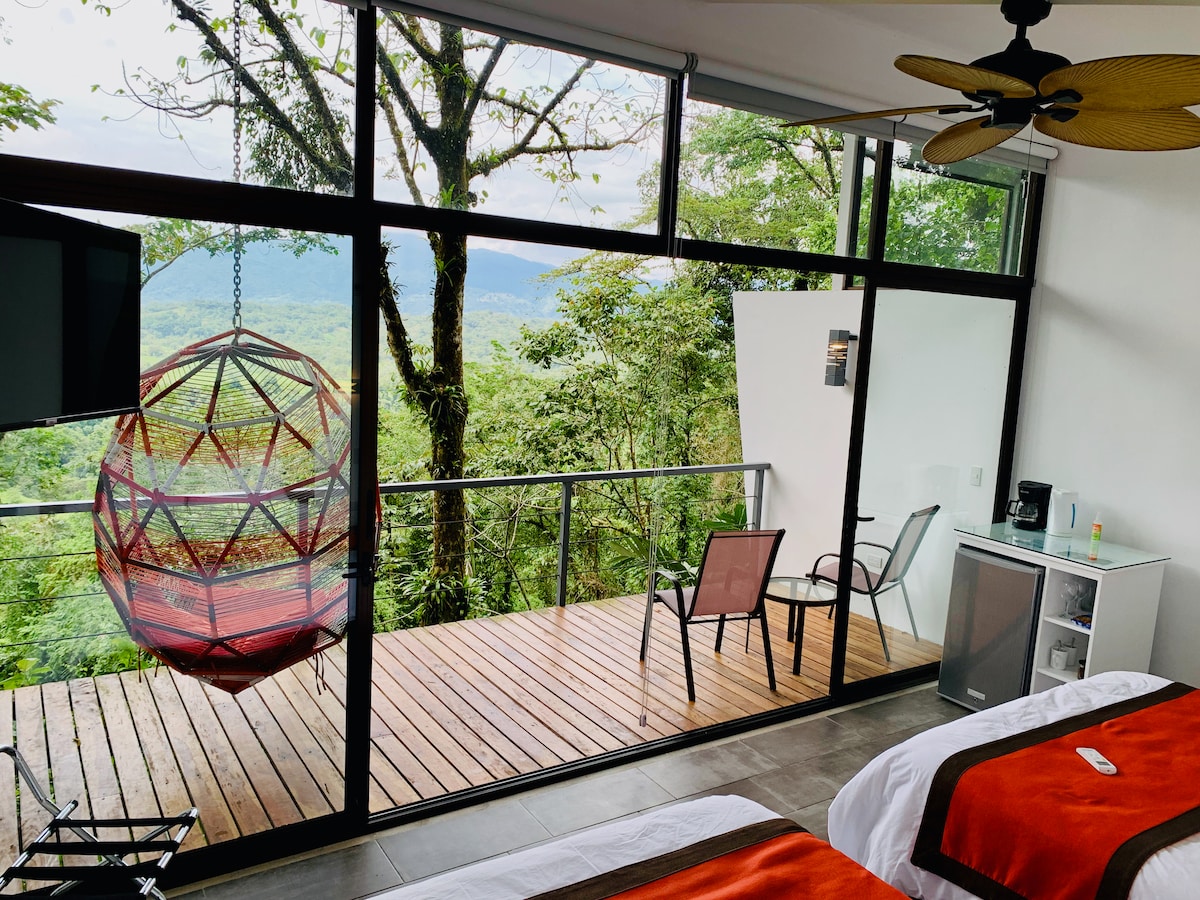 Hermoso y privado retiro de lujo ecológico cerca de la costa del Pacífico Sur, 4 horas en auto desde SJO. Nuestra ubicación única e impresionante ofrece a los huéspedes vistas panorámicas al mar y cuelga espectacularmente sobre el dosel de la jungla. ¡Escapada romántica, paraíso para los amantes de la naturaleza y los adictos a la adrenalina! Miembro de 1% For the Planet, devolviendo 1% de nuestros ingresos anuales a organizaciones ambientales locales que trabajan en proyectos de conservación