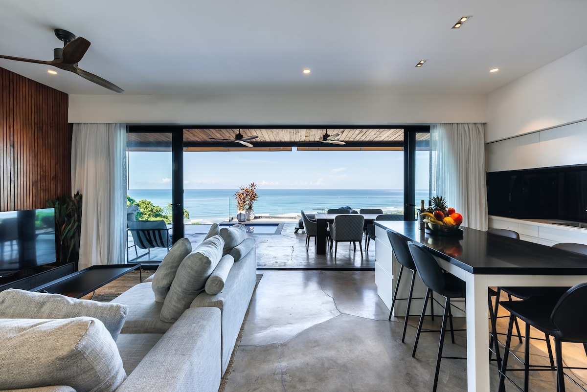 Esta villa de estilo moderno de nueva construcción es un lugar perfecto para relajarse y disfrutar de las impresionantes vistas al océano y a la costa. Este moderno diseño abierto con puertas plegables totalmente abiertas te permitirá disfrutar plenamente del paraíso, pero con la comodidad de tu hogar. Nuestra villa se encuentra en la cima de la montaña y solo con acceso privado cerrado. Nuestros cuidadores de la propiedad viven en la propiedad para garantizar que nuestros huéspedes reciban el mejor servicio y seguridad y estén disponibles si es necesario en cualquier momento. ¡Te damos la bienvenida al paraíso!