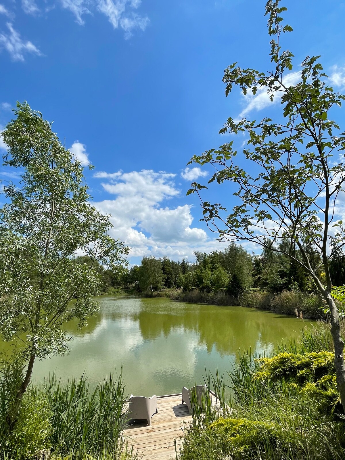Le invitamos a nuestra casa de madera en una isla rodeada de un gran estanque y una hermosa vegetación. La casa es ideal para aquellos que quieren escapar de la ciudad y trasladarse a un lugar donde reina la paz. Los alrededores de la isla invitan a pasear, y los campos y bosques cercanos a pasear en bicicleta. Después de un día activo, es hora de relajarse y tomar un café en nuestra terraza sobre el agua, y al final del día, disfrutar juntos de una hoguera.
