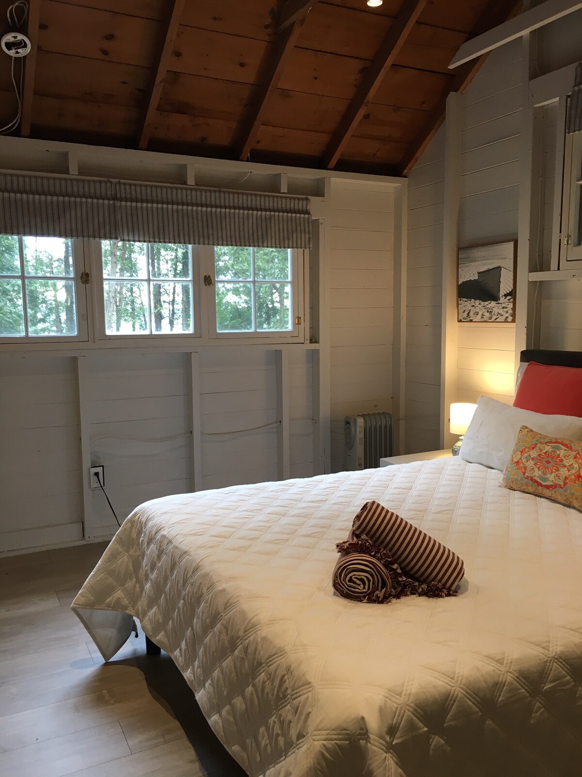 Tucked away among mature trees our charming Yellow Cottage offers privacy and a peaceful setting. The property includes parking for two vehicles and a fire pit in the yard-perfect for gathering under the stars and enjoying quiet evening campfires. Inside, the cottage blends rustic charm with refined comfort, featuring cathedral ceilings and a warm, open concept living space. The cottage comfortably sleeps guests in a private bedroom or an open loft each with a queen bed.