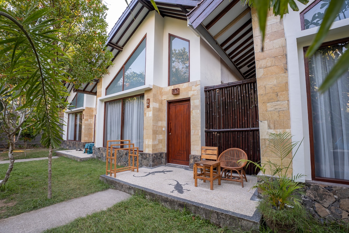 Natural and cozy decoration with local handmade furniture. Hot water, aircon, wifi and breakfast included The rooms are located 8 min walking from Selong Belanak beach There is garden, swimming pool and a bar terrace to enjoy breakfast or work We offer surf lessons, transport services to airport, waterfalls, snorkelling tours and beach tours.que te hechizará.