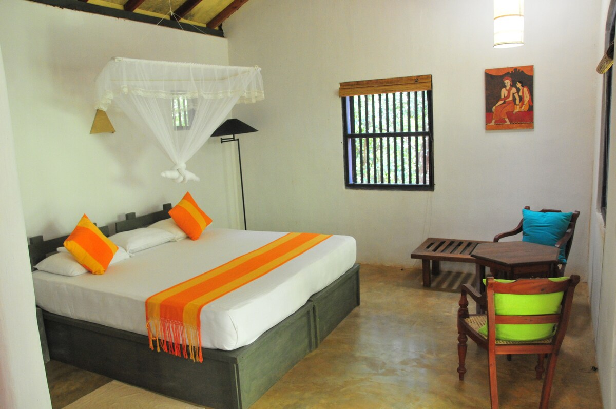 Equipado con todas las comodidades modernas, incluidas duchas de agua caliente, este acogedor eco-cottage está a poca distancia a pie de las rocas Sigiriya y Pidurangala y es ideal para parejas o familias pequeñas a las que les encanta pasar tiempo en la naturaleza. La cabaña forma parte de un eco-retreat enclavado en 4 acres de bosque tropical lleno de vida silvestre nativa y muchas aves. El desayuno está incluido en el precio y se pueden pedir otras comidas en nuestro menú. Tenemos un excelente chef que crea los platos locales y occidentales más deliciosos.