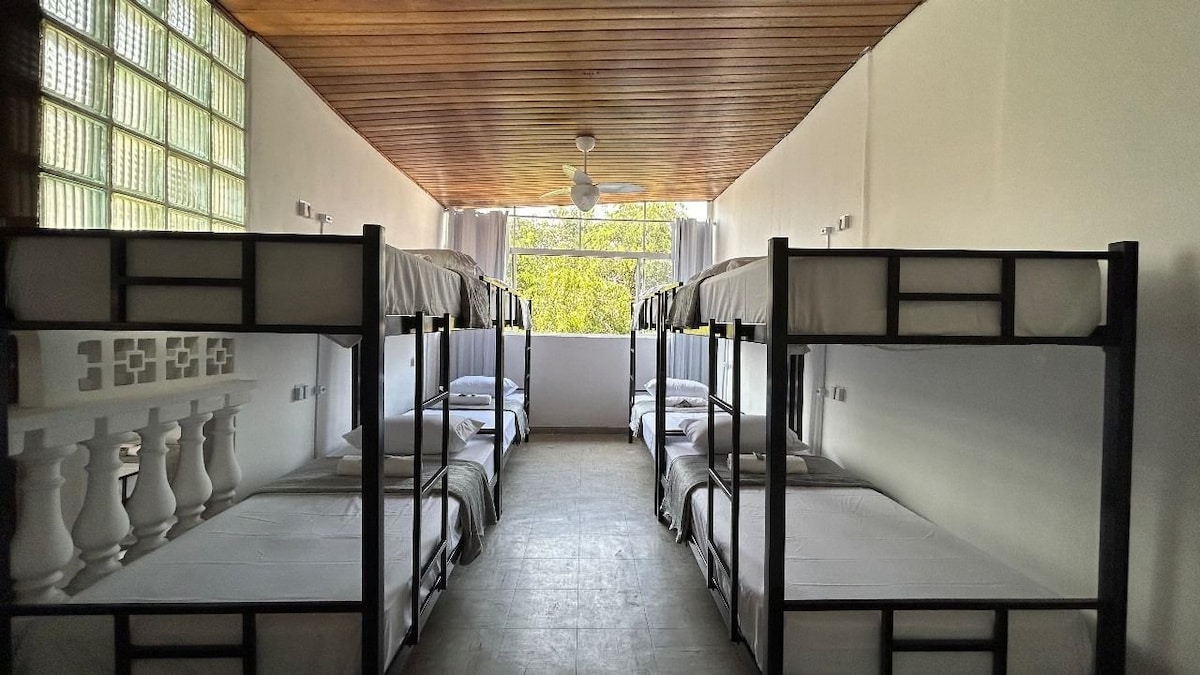 Nosso hostel oferece quartos compartilhados confortáveis e organizados, equipados com beliches modernos com cortinas individuais, garantindo mais privacidade durante a sua estadia. Cada cama possui tomada, e o ambiente é arejado e limpo diariamente.Uma ótima opção para viajantes, mochileiros e grupos que buscam conforto e economia.