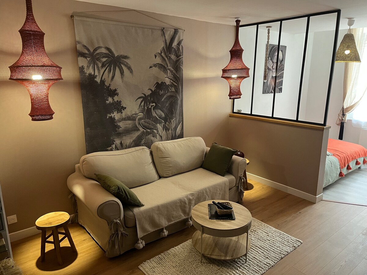 ¡Bienvenido a JoyNest! Ubicado a 5 minutos a pie de la estación de tren y del centro de la ciudad, este estudio de 21 m² renovado en un pequeño edificio de estilo "Amiénoise" ofrece todas las comodidades modernas: ropa de cama nueva (160x200), SmartTV y MolotovTV, Wifi, Nespresso, lavadora, microondas, horno, vitrocerámica, heladera. Se proporcionan sábanas y toallas. Check-in/out con caja de llaves. Perfecto para descubrir la ciudad a pie (catedral, hortillonnages, barrio de Saint-Leu) o acceder a París en tren en 1h15