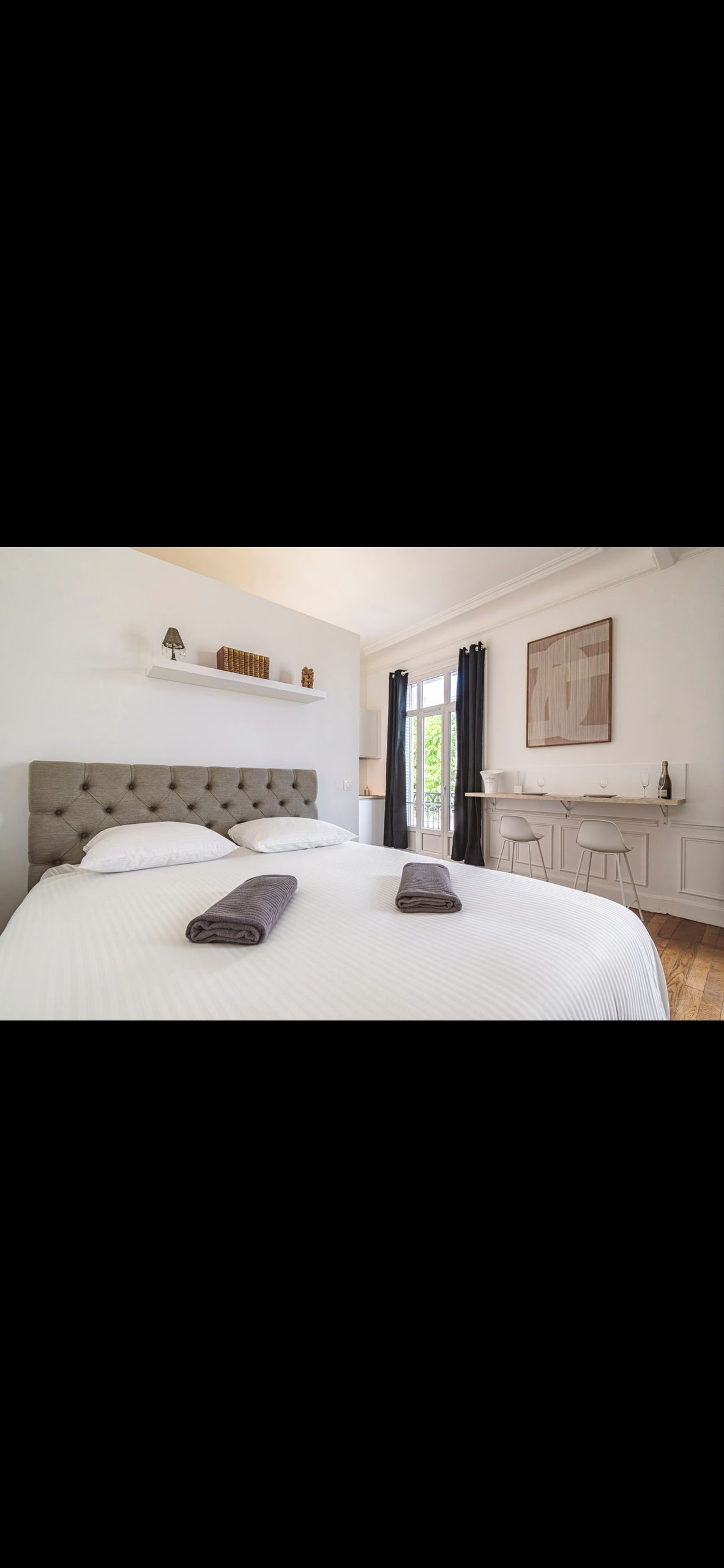 Piso totalmente reformado en una calle muy tranquila del centro de la ciudad, idealmente situado entre la catedral y la estación.A dos pasos de todos los servicios y del centro de Reims (Erlon, forum y boulingrin).Encontrará todo lo necesario, como lavadora, hervidor de agua, cafetera, wifi, TV, fibra, placa de inducción y horno/microondas, persianas eléctricas..Se proporcionan toallas, artículos de aseo y sábanas. ¡El lugar perfecto para pasar una agradable estancia en la ciudad de los sacres!