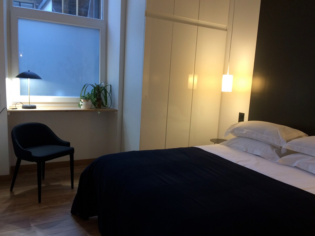 ✨ Disfrutá de un alojamiento elegante situado en el barrio más bonito de la ciudad. ✨ Los + 🏡 Cómodo y tranquilo ✝️ La Catedral está a 10 minutos a pie 🚉 La estación está a dos minutos a pie 🪟 Gran ventanal con terraza 🌳 El parque de los Paseos, situado frente a la residencia, es muy agradable en la temporada de verano. 🎅El mercado navideño se celebra en este parque en diciembre. 🛌🧺 Se proporcionan sábanas y toallas 🛜Wifi. Fibra óptica / Internet de fibra